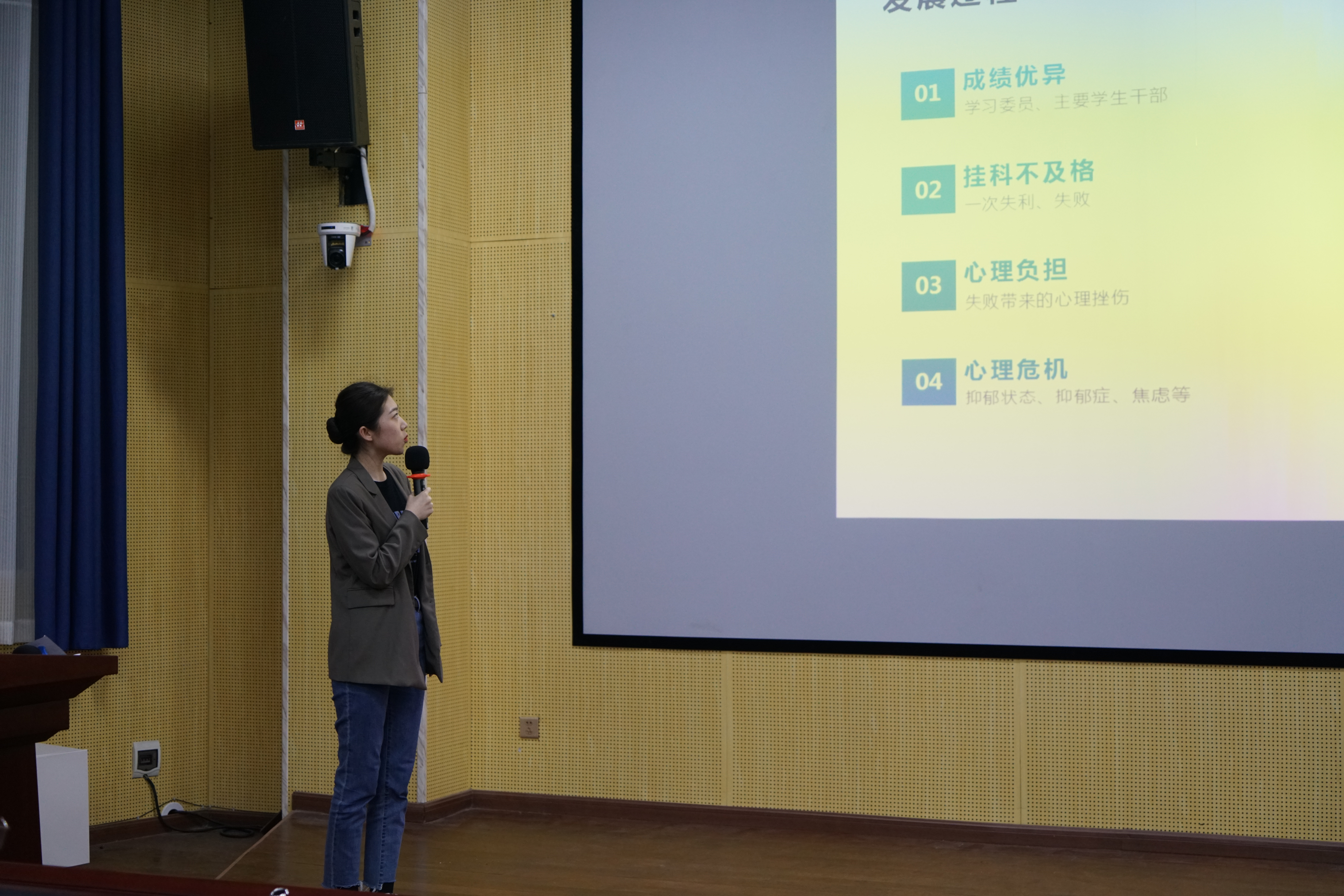 各班汇报主要围绕案例简介、研讨收获,以及面对该案例应如何处置等内容展开。案例选取有较强的代表性,“学生有“幻象”怎么办”、“遇到患有精神抑郁症的学生怎么办”、“学生出现考试焦虑怎么办”等,在一定程度上达到了相互交流学习的目的。