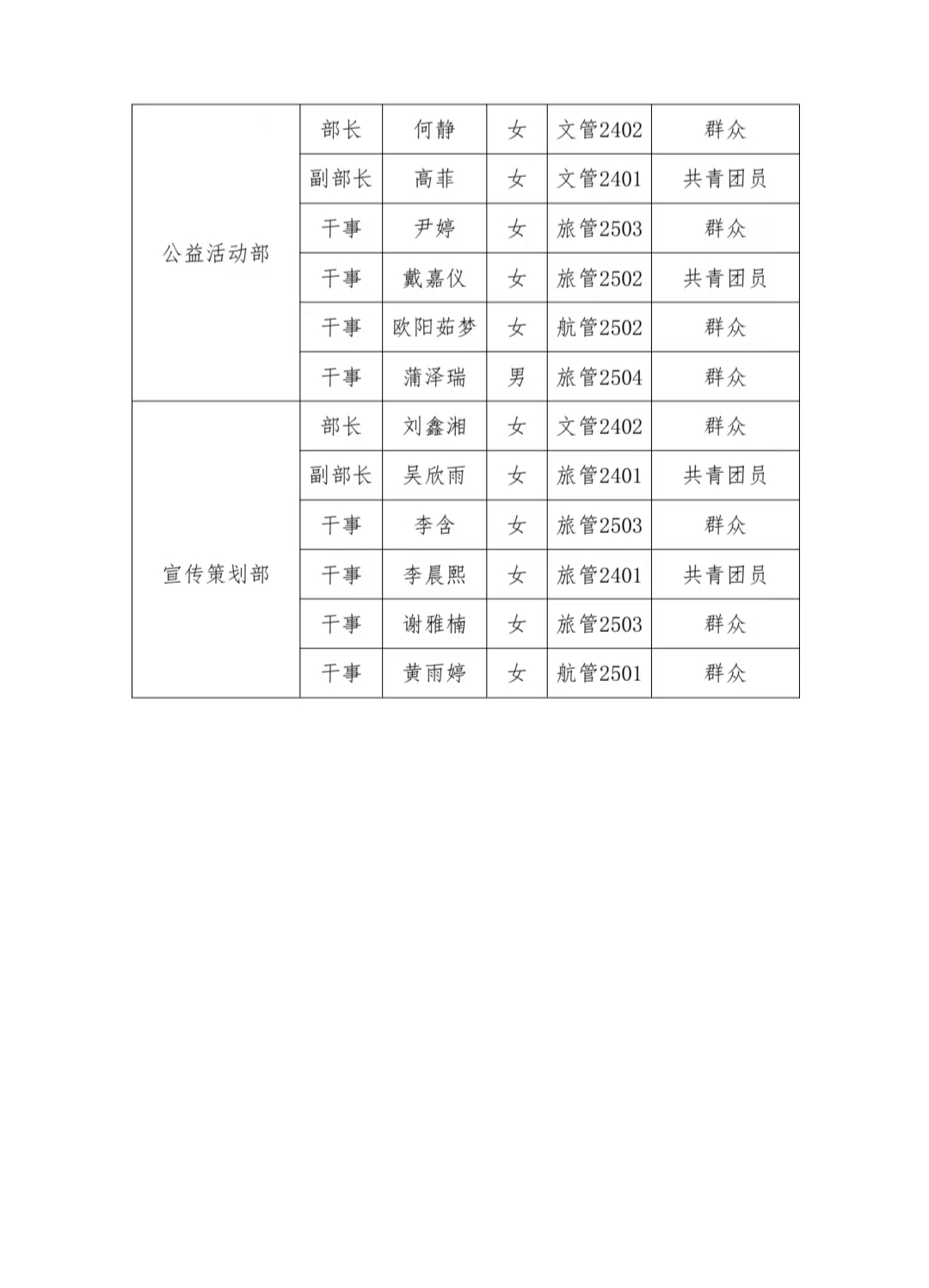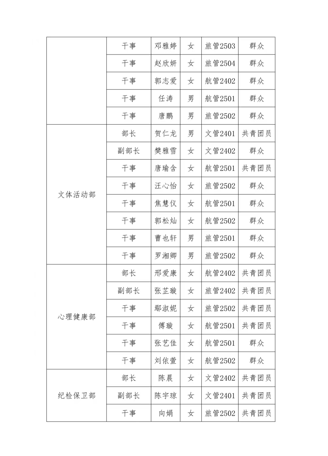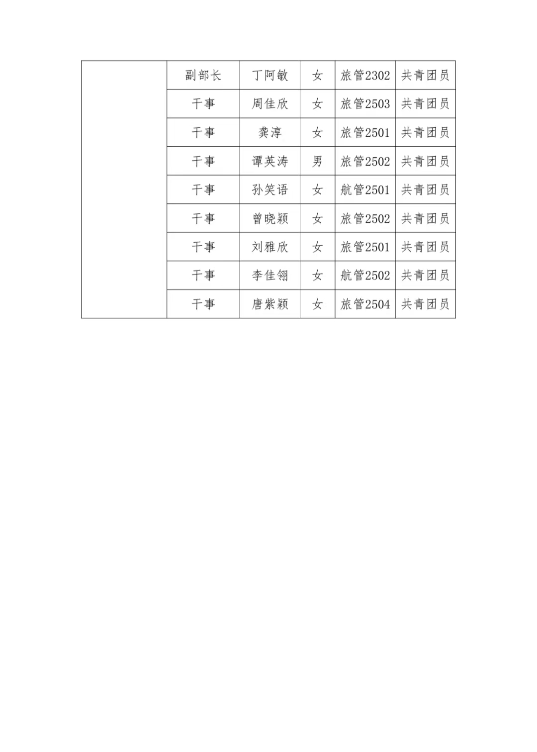 bat365中文官方网站旅游与文化产业学院第八届学生机构团学干部拟任名单公示