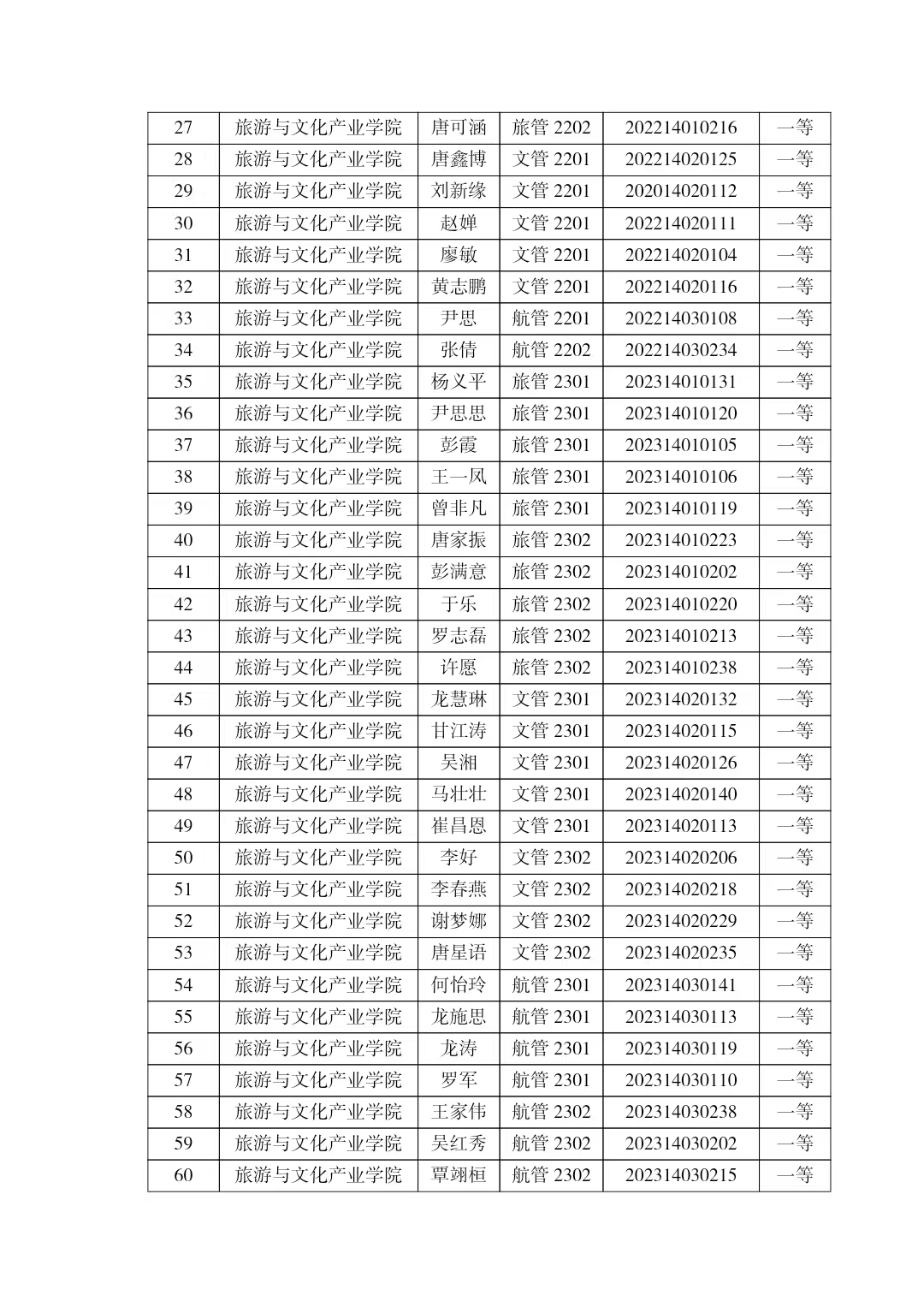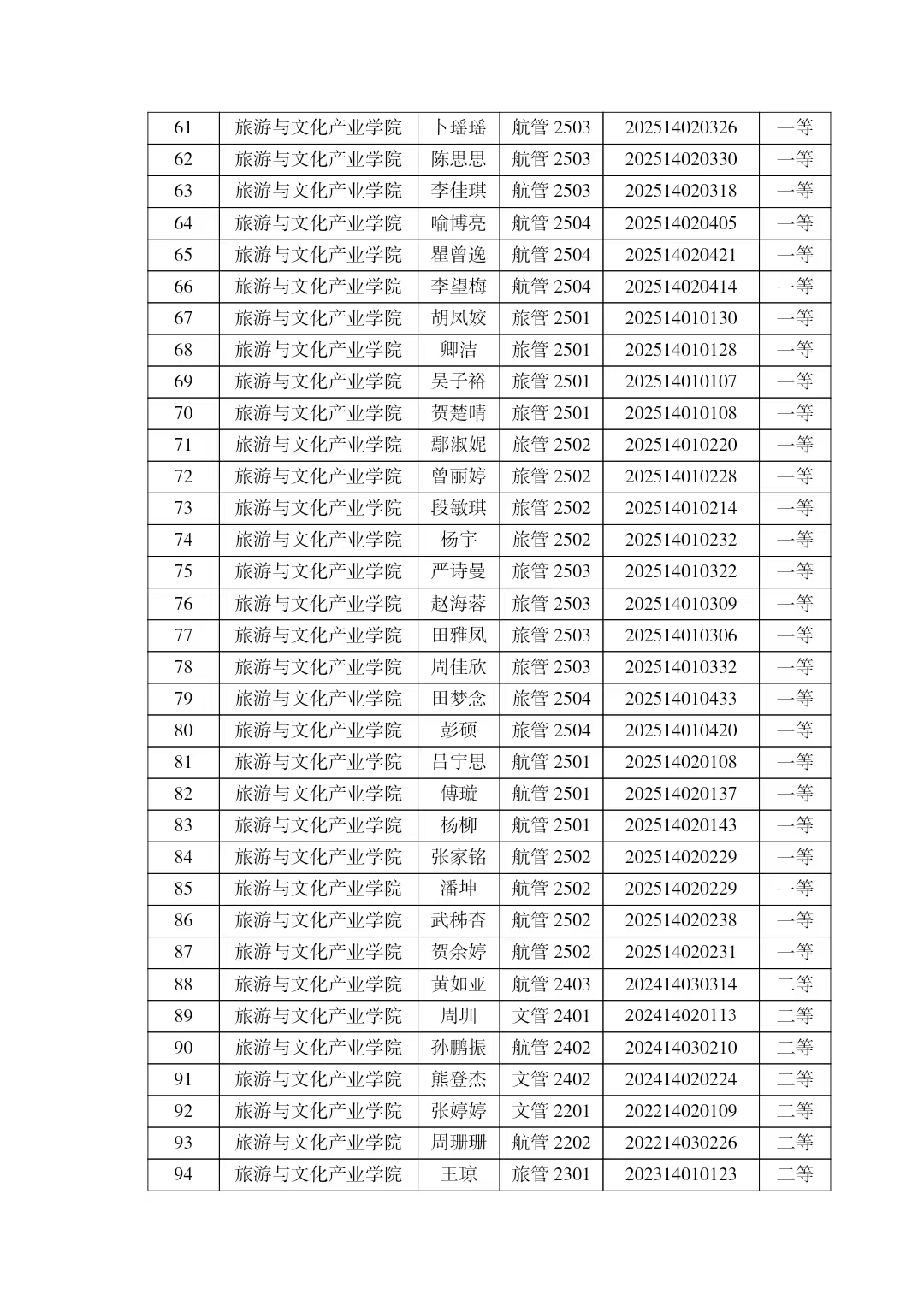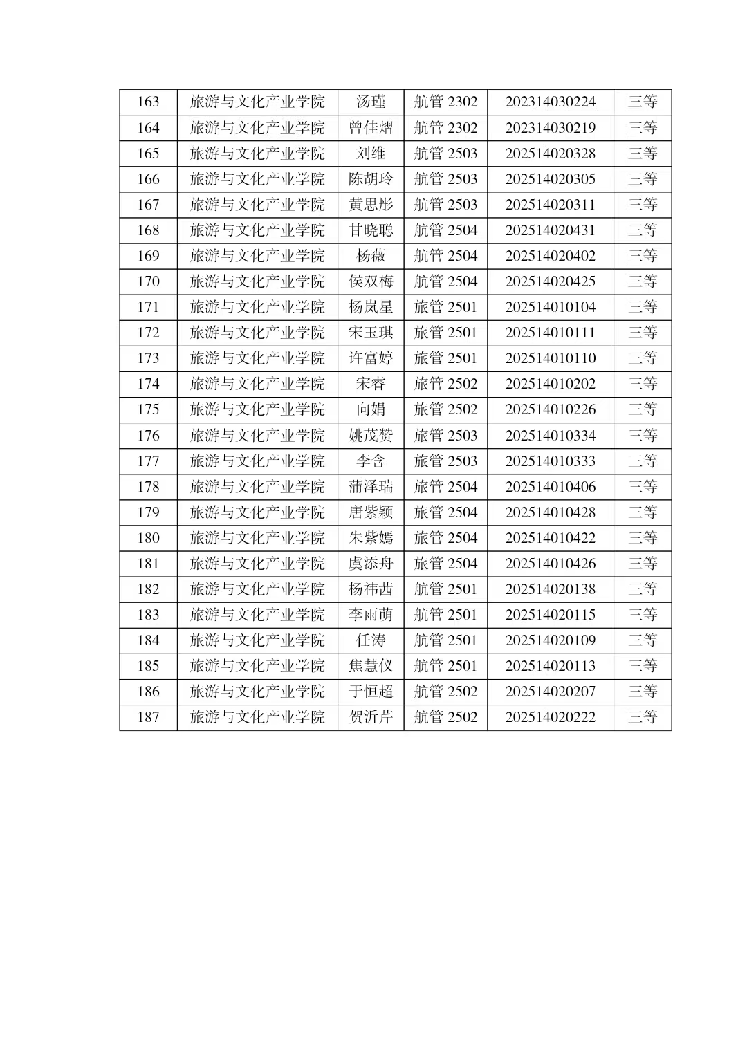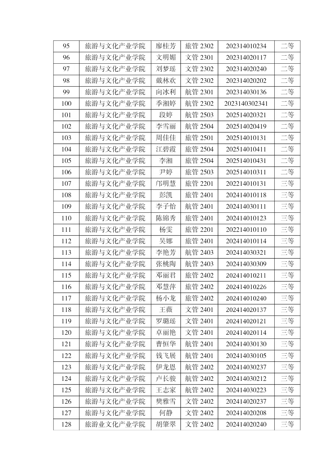 旅游与文化产业学院2025-2026学年国家励志奖学金拟推荐名单公示