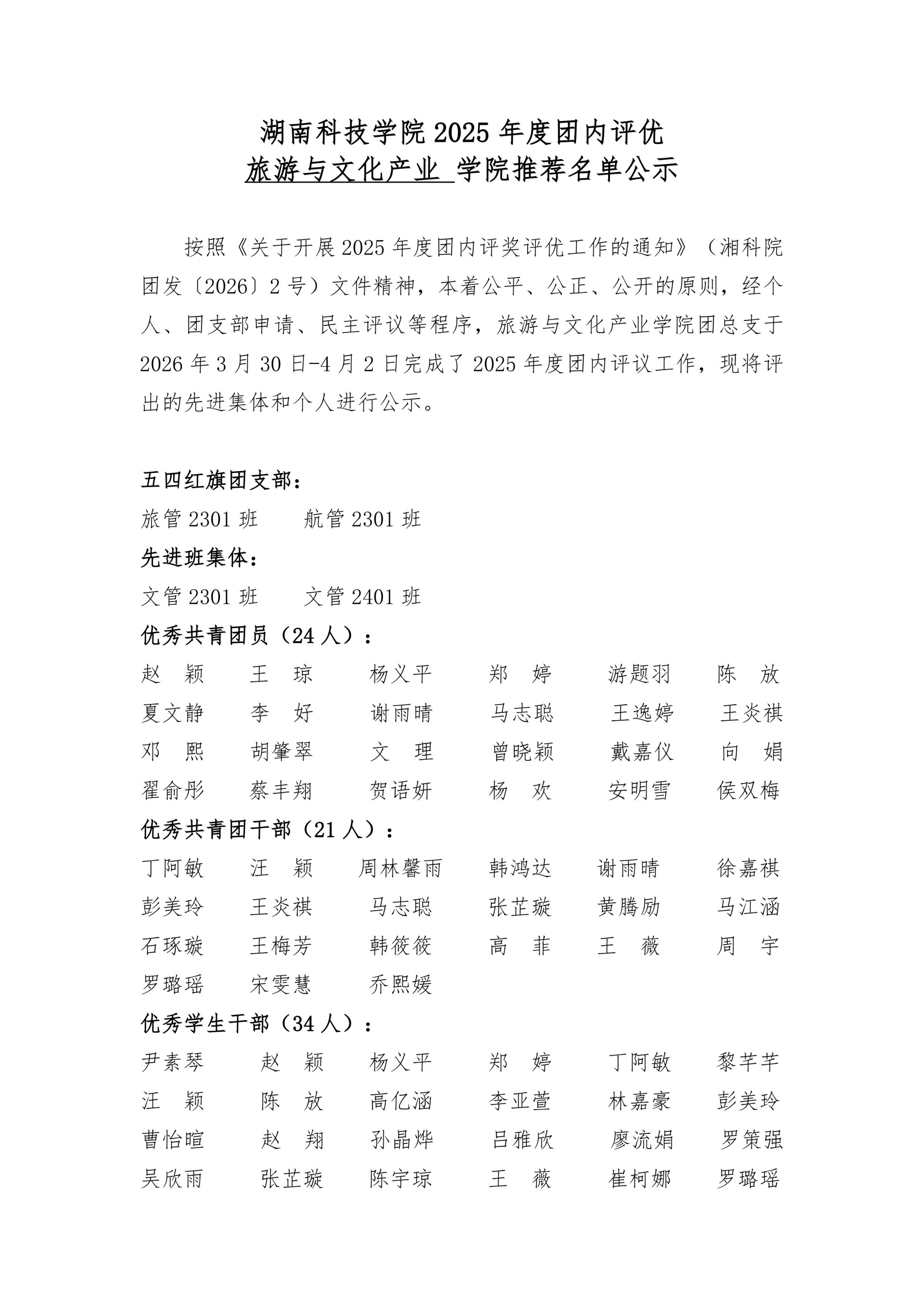 bat365中文官方网站2025年度团内评优旅游与文化产业学院推荐名单公示