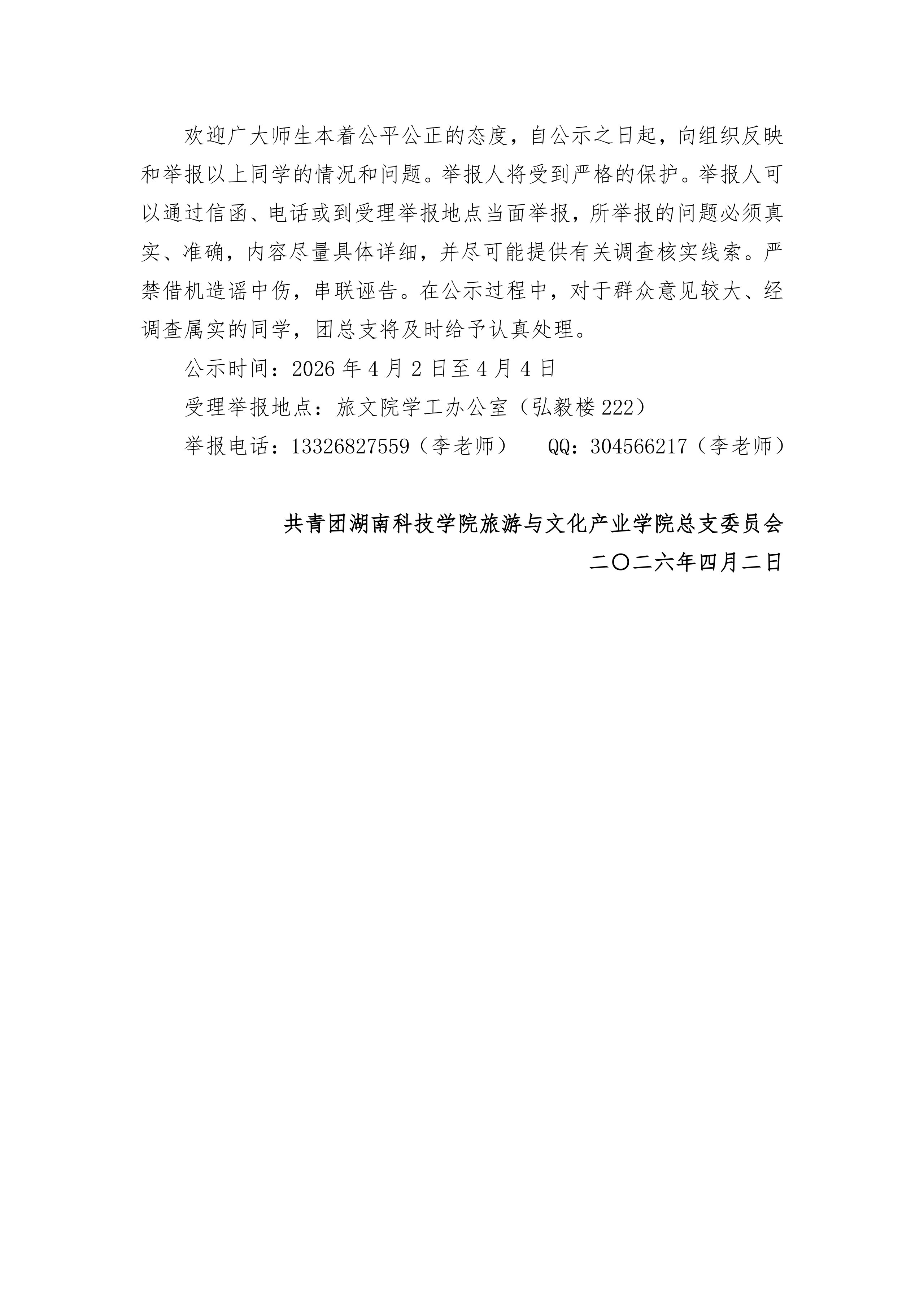 关于对旅游与文化产业学院2026届bat365中文官方网站优秀毕业生拟推荐名单的公示
