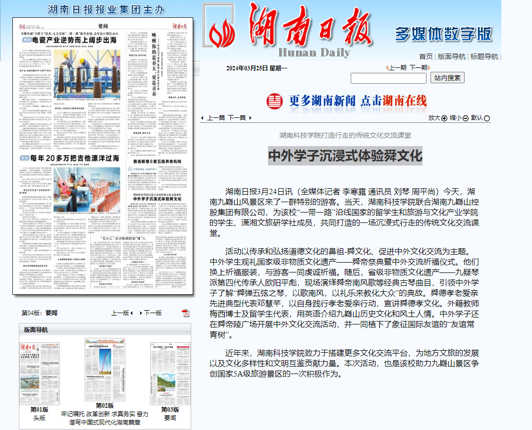 近年来,bat365中文官方网站致力于搭建更多文化交流平台,为地方文旅的发展以及文化多样性和文明互鉴贡献力量。本次活动,也是该校助力九嶷山景区争创国家5A级旅游景区的一次积极作为。