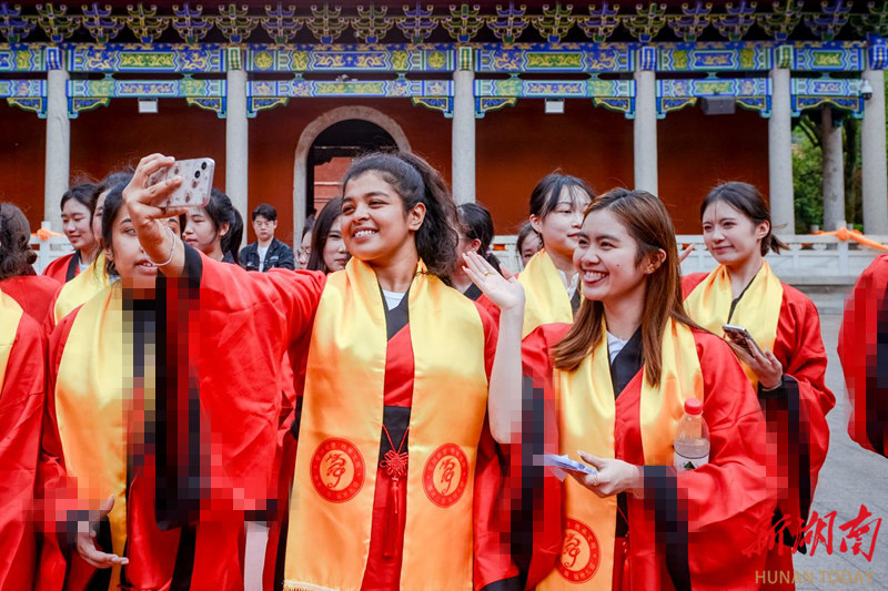 外国学子穿上汉服参与国家级非物质文化遗产——舜帝祭典暨中外交流祈福仪式