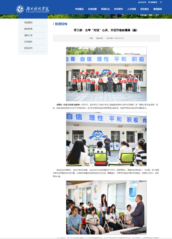 活动还特别设置 一分钟古琴”体验环节,让学生亲身感受古琴音乐对情绪的调节作用,实现文化传承与心理疗愈的深度融合。