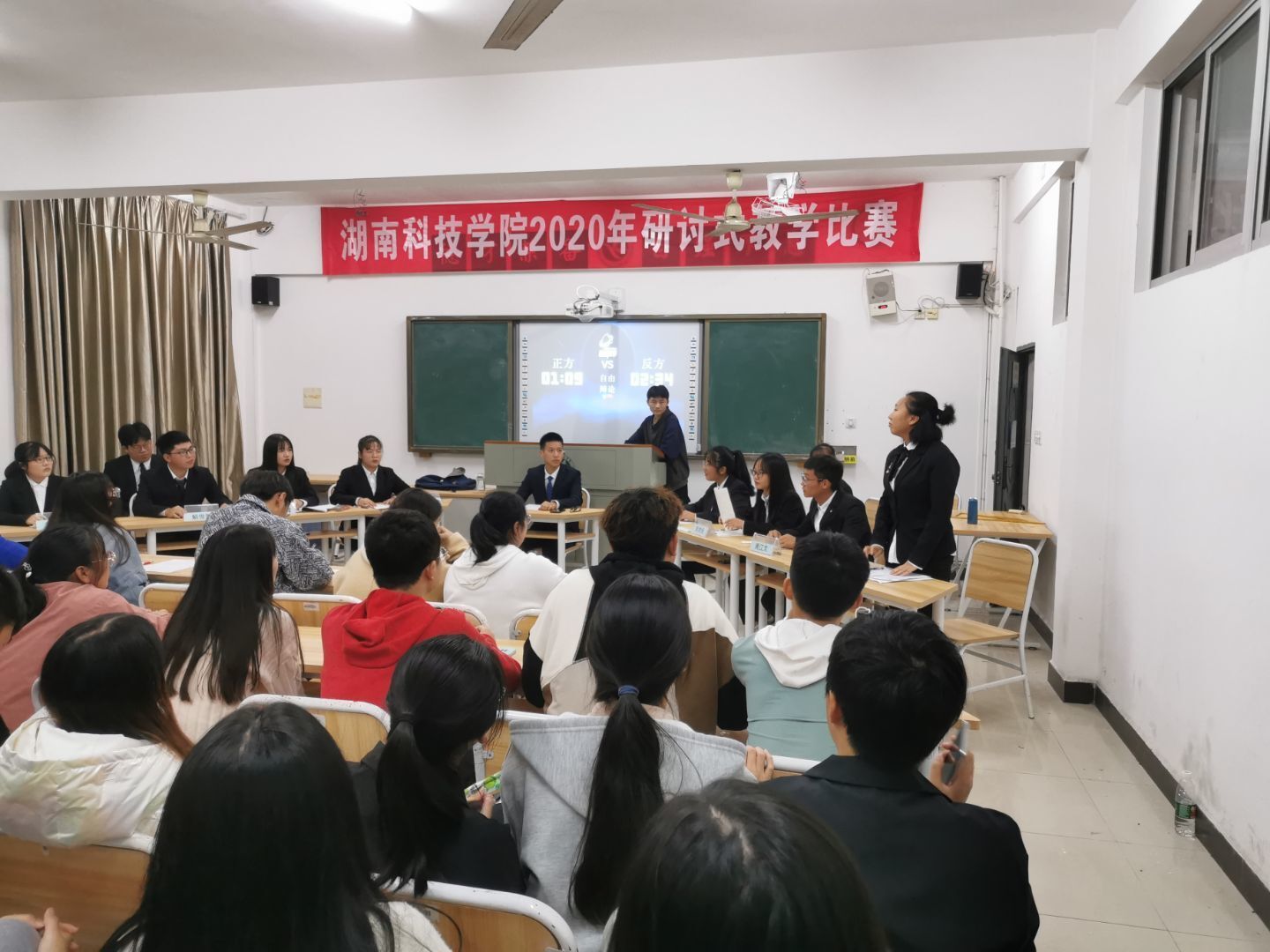 (本网讯 肖雪)为了使同学们了解更多心理健康知识,提升心理健康水平,我院学生会心理部与辩论队联合举办的新生辩论赛于10月31日晚在明理楼405举行。心理专干谢美及学院辩论队成员出席,近20名种子选手参与了本次比赛。