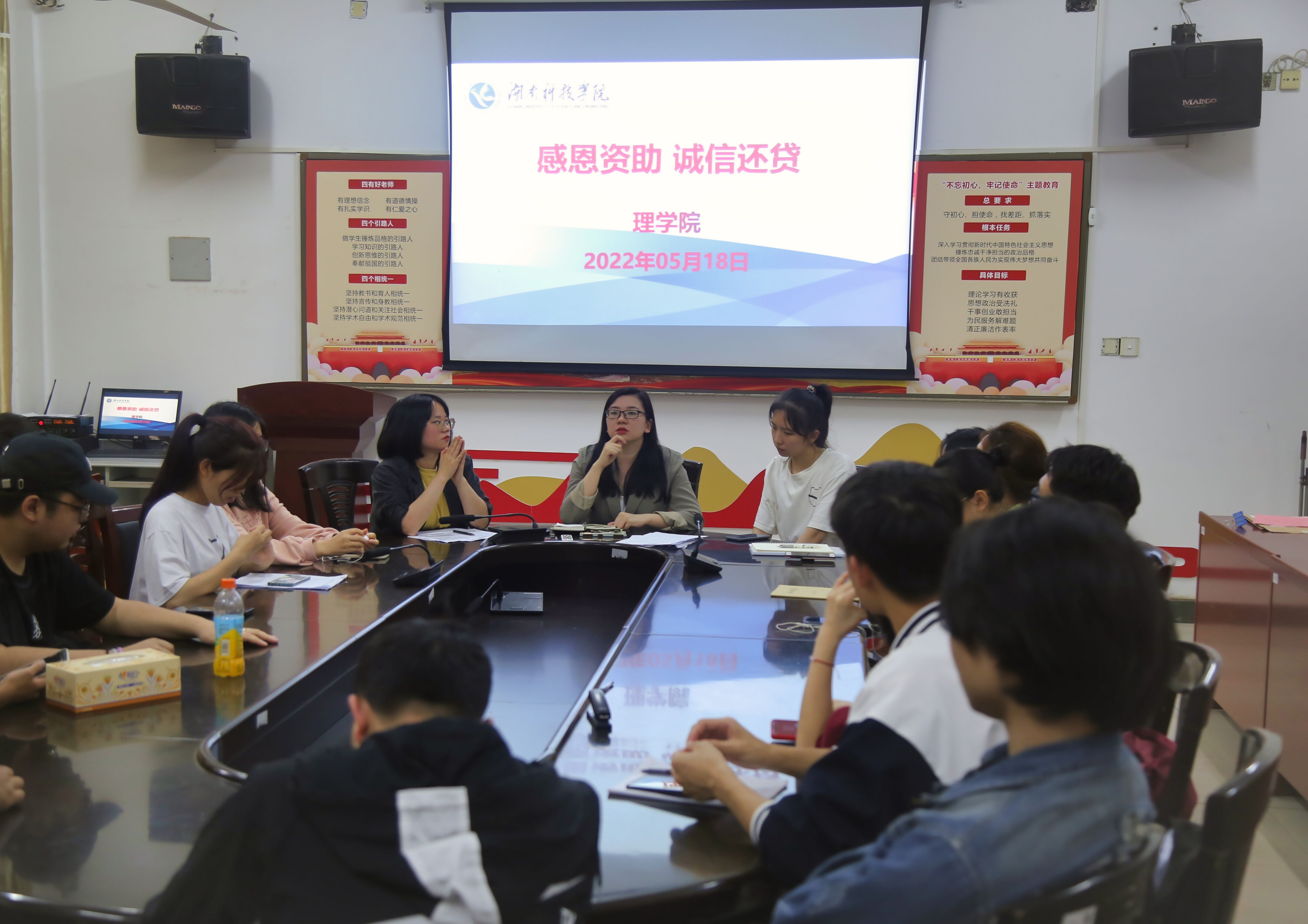 本网讯(通讯员钟子菁曹惠如)5月18日下午,理学院于明理楼308开展“感恩资助,诚信还贷”教育活动。理学院党总支副书记兼副院长欧阳素勤出席,活动由学院资助专干曹惠如主持。