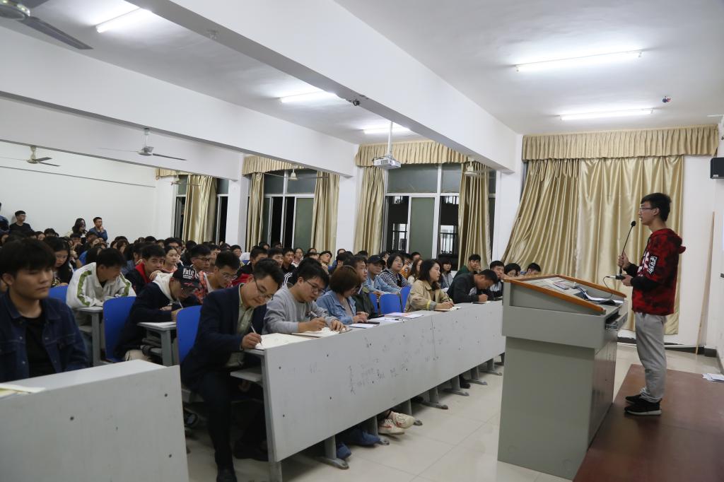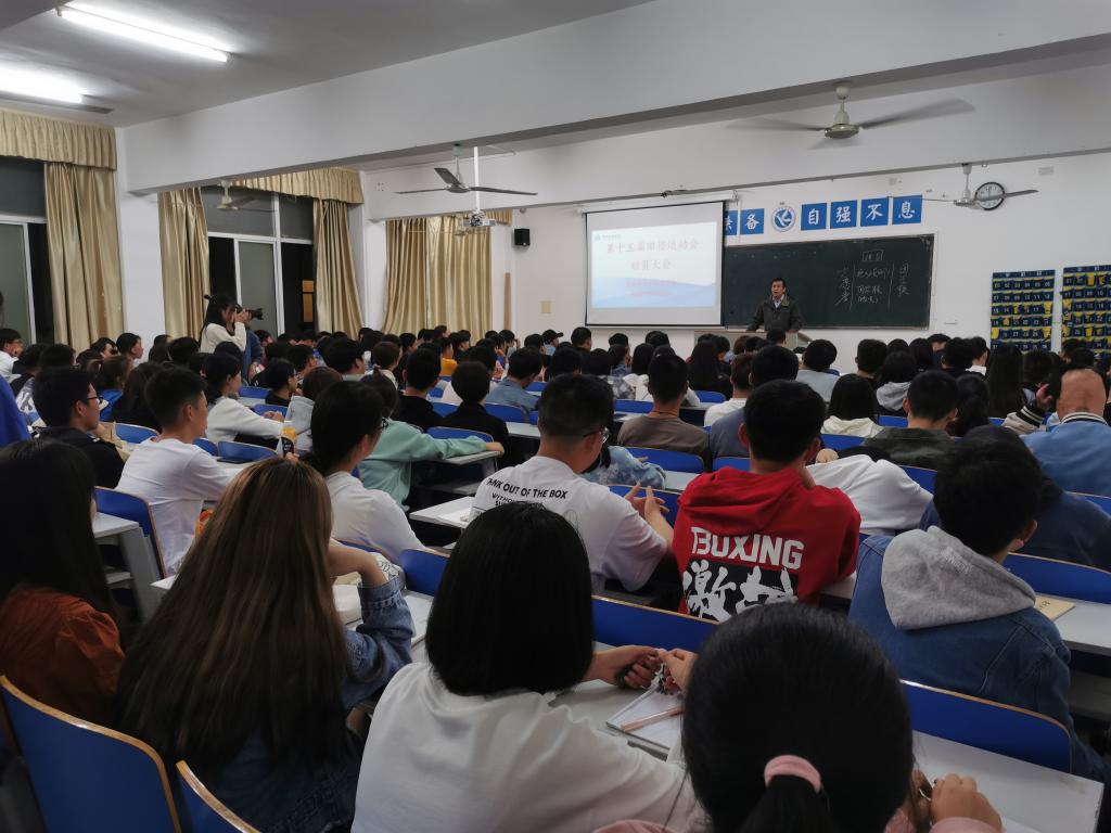 会上,物理1902班的梁光耀作为运动员代表进行了发言,他号召运动员赛出风格、赛出水平,为学院争光,并以慷慨激昂的宣誓作为结尾。随后,物理2002 班的朱德兴作为志愿者代表进行了发言,“志愿服务的参与不仅是一种荣幸还是一种骄傲,更是义不容辞的责任,也是当代青年靓丽的风景线。”接着,文体部副部长谭燕为大家详细讲解了运动会方案,明确了各部门的分工,为运动会可能出现的各种问题做好了预案。最后,理学院党总支副书记黎建军进行了总结发言。他提出了“自信、拼搏、超越、团结”的体育精神,强调了三点:第一,把握好三个时间点:开幕式时间、运动会期间、闭幕式时间。第二,学院有奖励机制,运动员参加比赛每获得1积分奖励十元,团体赛翻倍奖励。第三,注意安全问题,做到赛前充分热身,赛后及时补给。