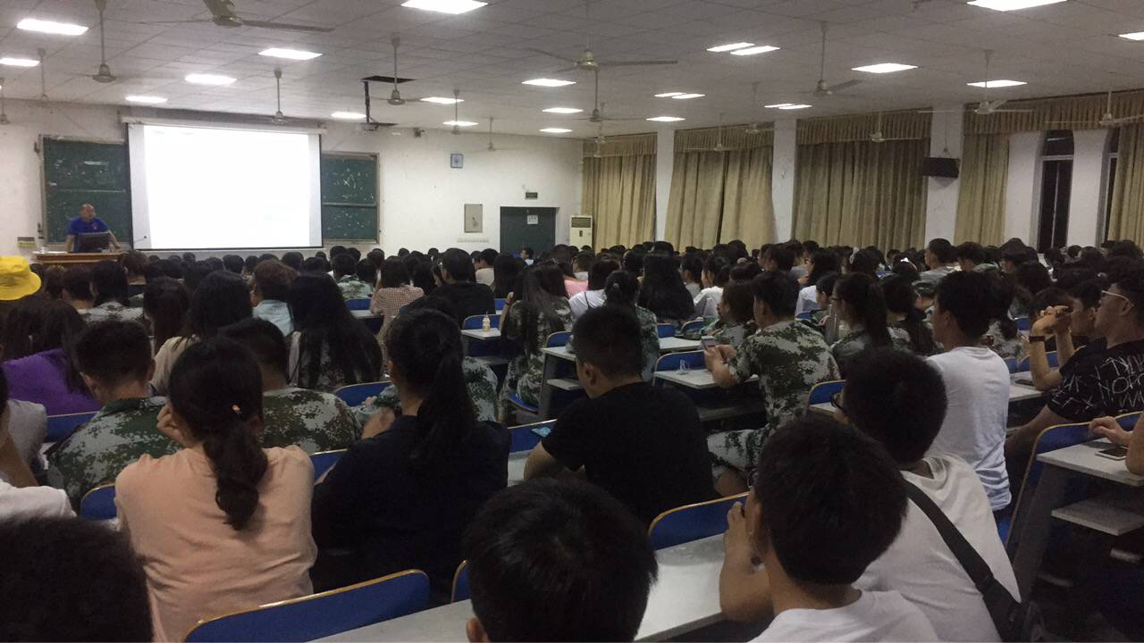 本网讯(通讯员 谢娟 芮沈喆)为提高同学们的安全防范意识,杜绝宿舍安全隐患。9月13晚,理学院在学校统一安排下于立信楼602召开新生安全知识讲座,全体18级新生参加,讲座由保卫处科长陶振民主讲。