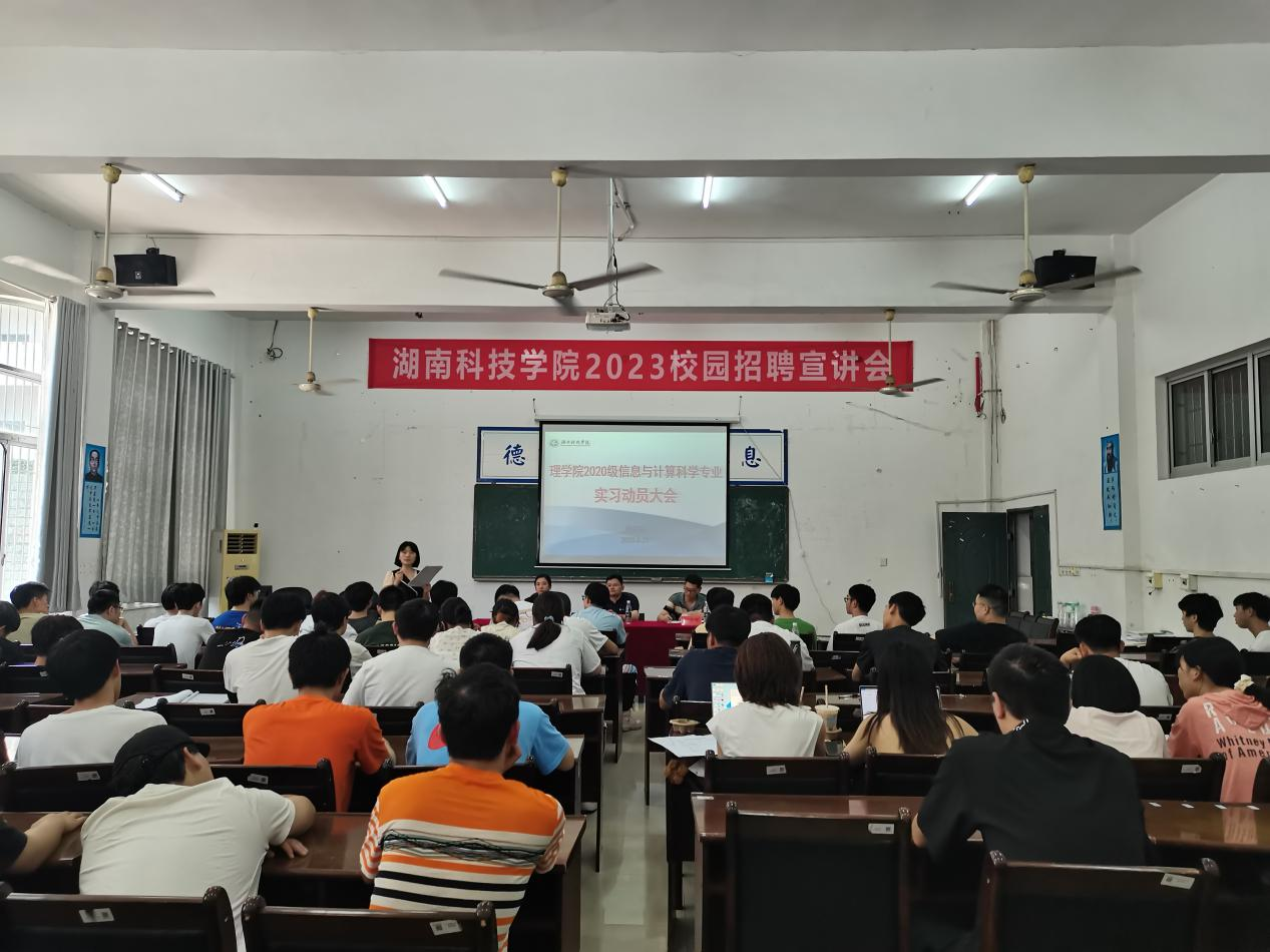 本网讯(李静杜俊杰)2023年6月27日下午,理学院在明理楼101会议室成功召开2023年信计专业实习、就业动员大会。学院党总支书记唐卫华、学院党总支副书记欧阳素勤、学院副院长吴清华、辅导员出席了动员大会,全体实习学生参加。会议由计算科学系系主任李静老师主持。