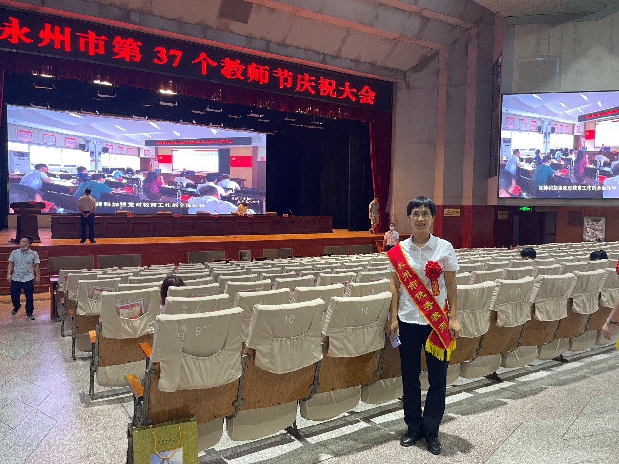 她是一个平凡的女教师,二十年来,一直站在教学一线,任劳任怨,以校为家,组里同事称她为“女汉子”。她的课堂是快乐的,让学生走近她,从而走近数学。她积极参加各种教学比武,多次获校一等奖,1次县二等奖,1次市一等奖;1篇课例被评为东安县名课;2021年在永州市高三二轮复习教学研讨会上上示范课,得到老师和学生的好评。主持省级课题1个,参与国家级课题1个,省级课题5个;三十多篇论文获得省、市级以上奖励,3篇论文发表在教育教学杂志上。多次参与高考复习书的编写工作;主持和参与了数学组校本课程的开发工作,成绩斐然。三次参加市级考试的命题工作;参加2020年高考评卷工作,担任理科20题小组长。担任数学奥赛教练,所带学生有1人获得国家三等奖,8人获得省一等奖,多人获市级奖。
