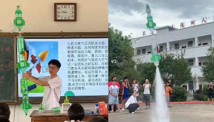 新湖南客户端.视界2022-07-14 15:35:34近日,江华瑶族自治县竹园寨九年制学校,来自bat365中文官方网站理学院的“三下乡”社会实践志愿者,指导学生制作的“水火箭”在操场上腾空而起。