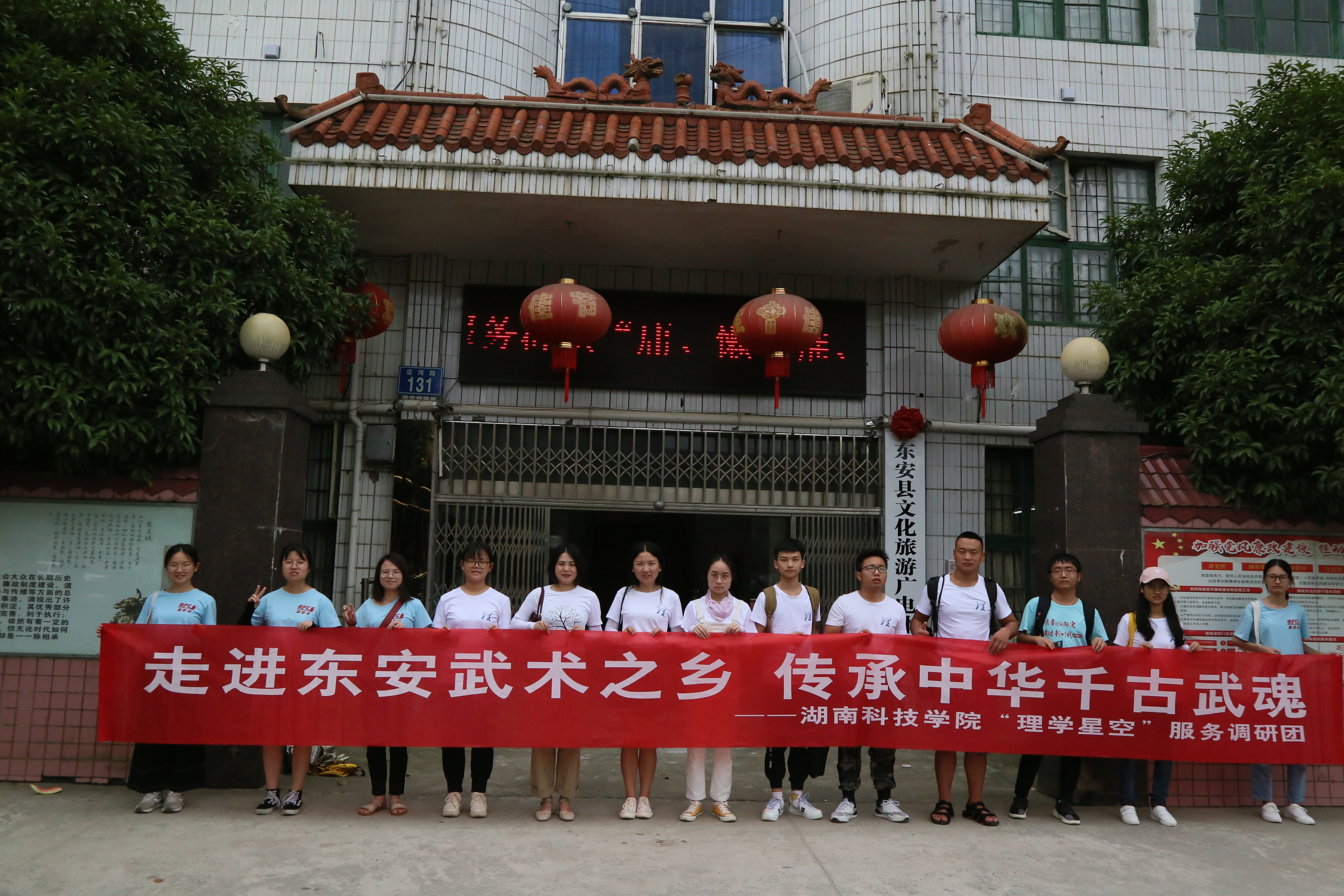 调研过程中,调研组十四名成员分组在东安周边地区通过实地走访、发放调查问卷等形式调查东安武术的承情况与发展前景,来了解东安武术。调研团也走访了东安县文化旅游广电体育局、江东文武学校、168江东搏击俱乐部等武学盛行之地,了解到东安武术文化在东安文化中的重要性。东安县是全国首批命名的“武术之乡”,在湘南一带享有“打不过东安”的美誉,东安武术于2012年被列为湖南第三批省级非物质文化遗产。东安武术源于三国时期的峨嵋拳,至今已有1700余年的发展演变历史,东安县武术队先后参加国际、国内比赛共18次,其中获得国际金牌6枚、全国金牌26枚、全省金牌265枚。当地每年都有举办东安武术周和各种武术比赛,以活动为载体,推广全民武术健身。东安县大力宣传武术文化,让武术走进校园、机关、部队来保护武术的传承和发展,同时开展武德教育宣传,以仁义为准则秉公仗义、不畏强暴、遵守公德、不欺弱小。
