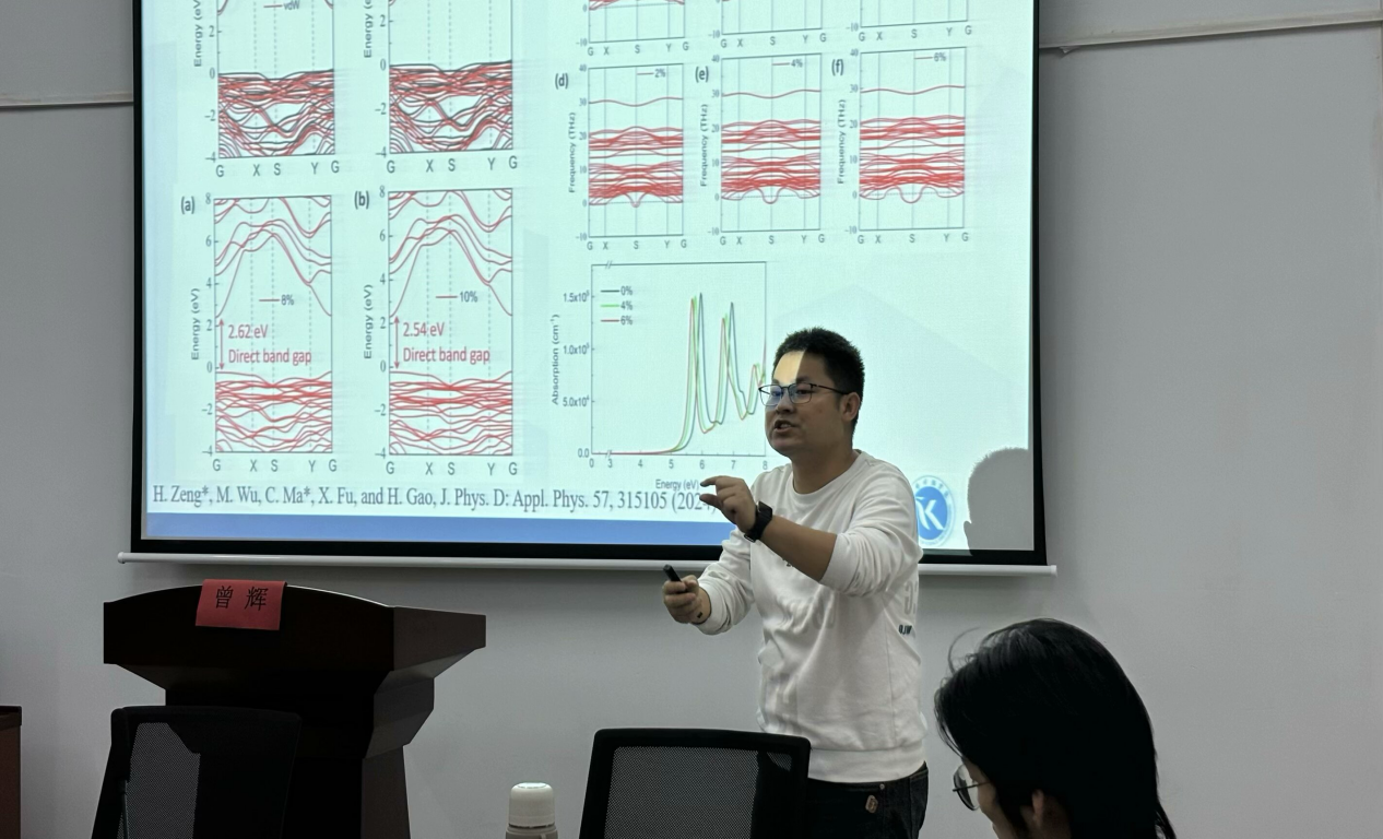 本网讯(通讯员:黄欣欣)11月5日晚,理学院于明理楼313举行了以“高导电低维氧化稼的设计与机理研究”为主题的学术讲座,该讲座由新能源材料与器件系主任曾辉博士主讲,理学院部分学生参加。