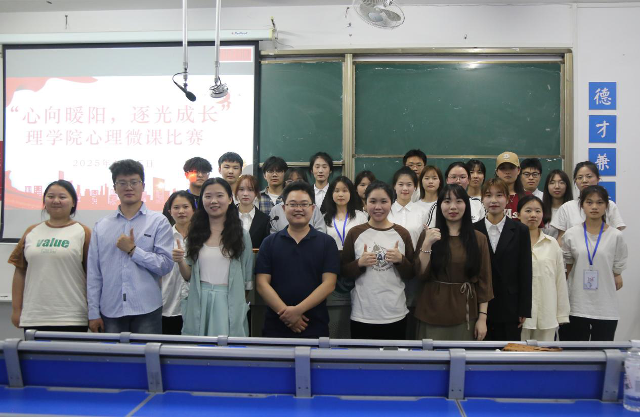 第七届心理微课比赛的号召,进一步普及心理健康知识,提升学生心理健康素养,理学院4月17日晚在明理楼401举办心理微课初赛。本次比赛由心理部干事赵雅鲜主持,理学院学工办主任杜俊杰、心理专干刘静等5名辅导员担任评委。