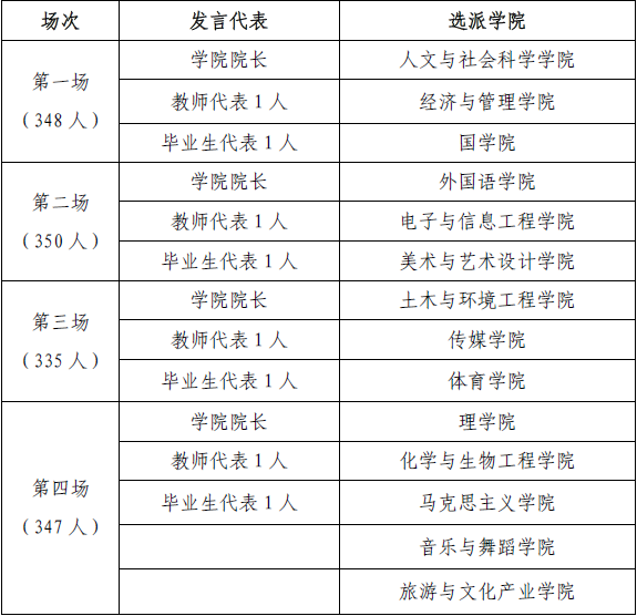 9. 经学校领导同意,各场次发言的代表指定如下:
