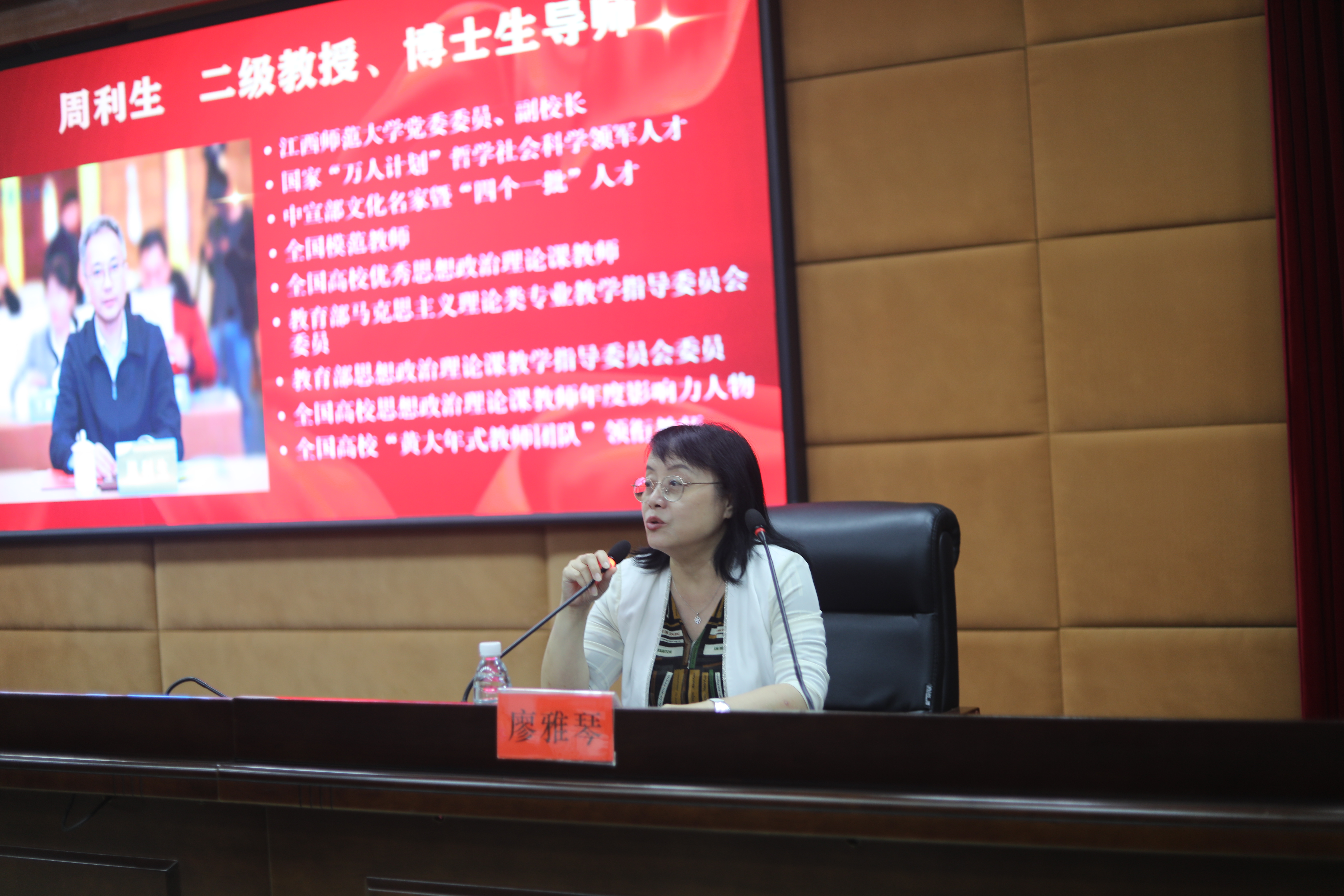 廖雅琴向周利生对母校的持续关注与支持表示感谢:“周教授联系上下五千年、横贯东西、生动运用案例的讲课离不开他深厚的历史文化积累,希望同学们在平时的学习中能够向优秀校友学习,提升文化素养,夯实专业基础。”