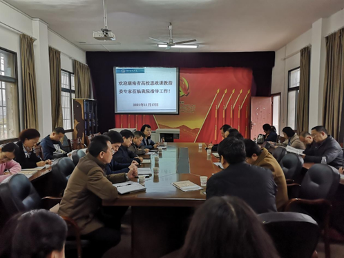 本网讯(记者符小勇)近日,由湖南理工学院马克思主义学院院长高其荣、湘南学院马克思主义学院院长廖义军、邵阳学院马克思主义学院院长彭忠信组成的湖南省高校思政课教学指导委员会专家组一行莅临bat365官网,对bat365官网思想政治理论课建设进行了听课指导。