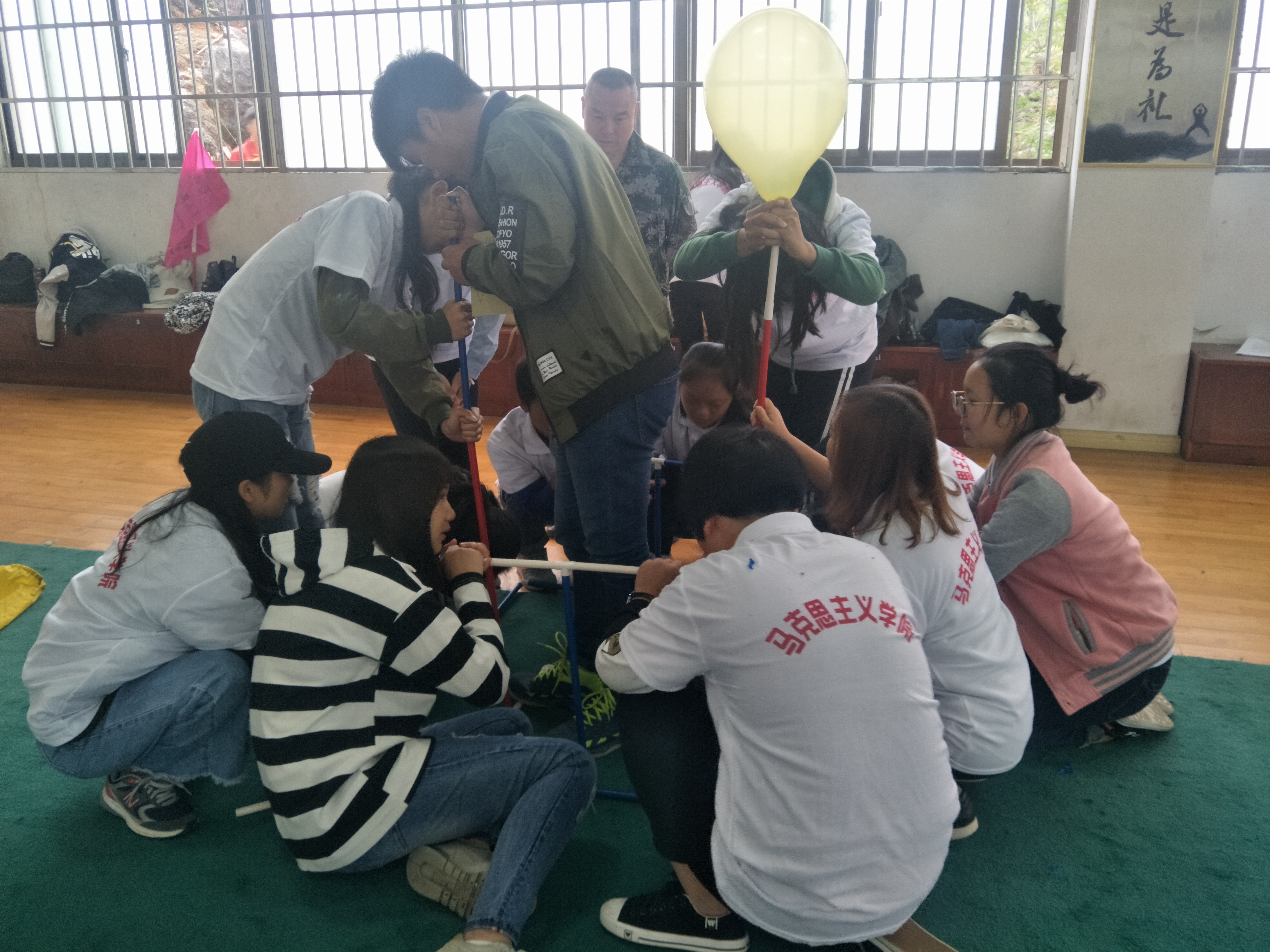 本网讯 (通讯员 贺茶湘 张亚娟)10月15日,马克思主义学院在体育训练馆开展“快速融入,共创未来”新生素质拓展活动,该院2017级全体新生参加此次活动。