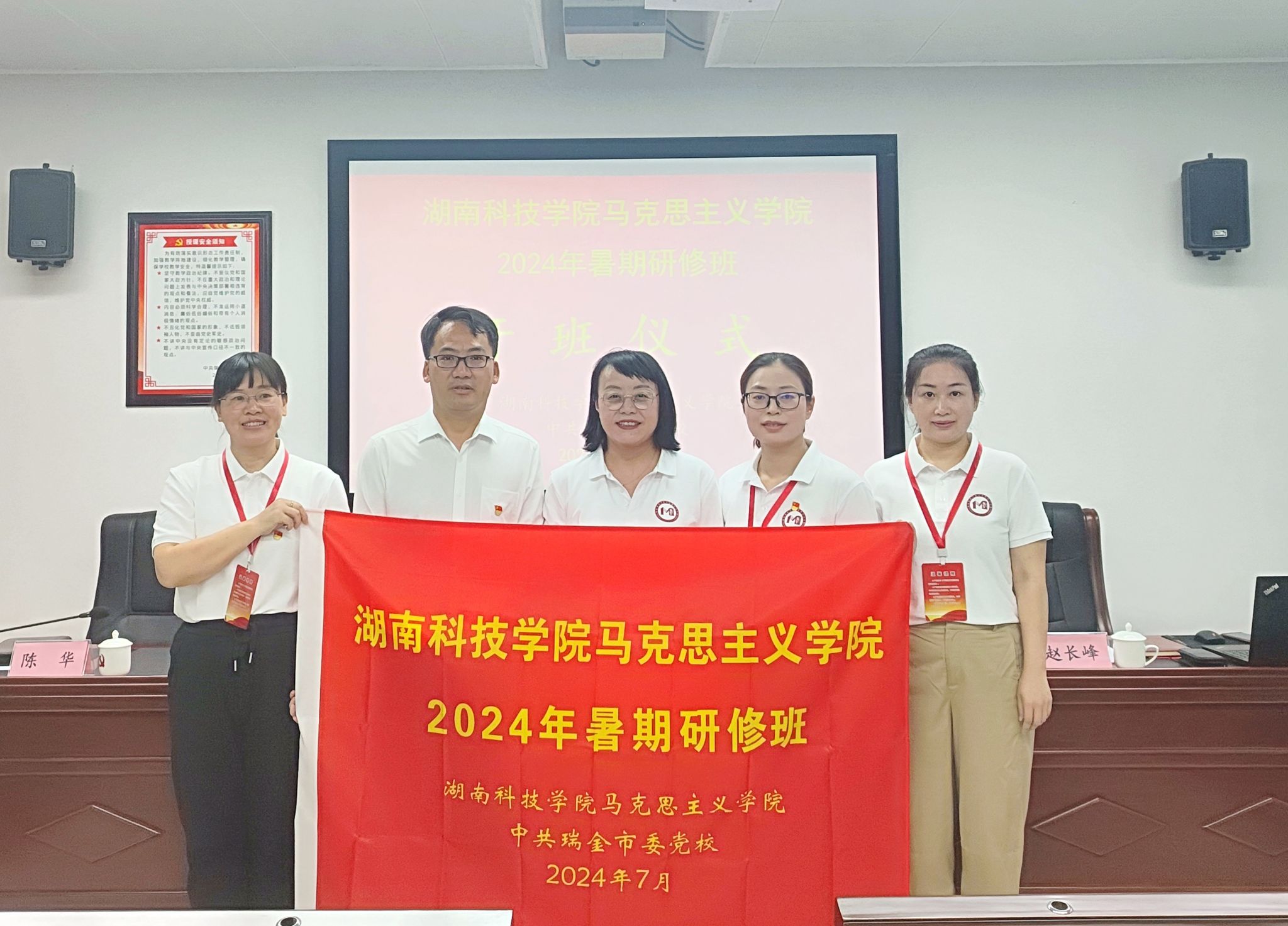 本网讯(通讯员 曹惠如)7月17日,bat365中文官方网站马克思主义学院全体教师2024年暑期研修班在江西省瑞金市委党校开班,bat365中文官方网站学术委员会主任唐艳明、马克思主义学院院长廖雅琴、总支书记陈玉皎、bat365中文官方网站思想政治工作研究所所长唐华山、学生工作部部长谷利民等,中共瑞金市委党校副校长陈华,以及马克思主义学院全体教师参加开班仪式。