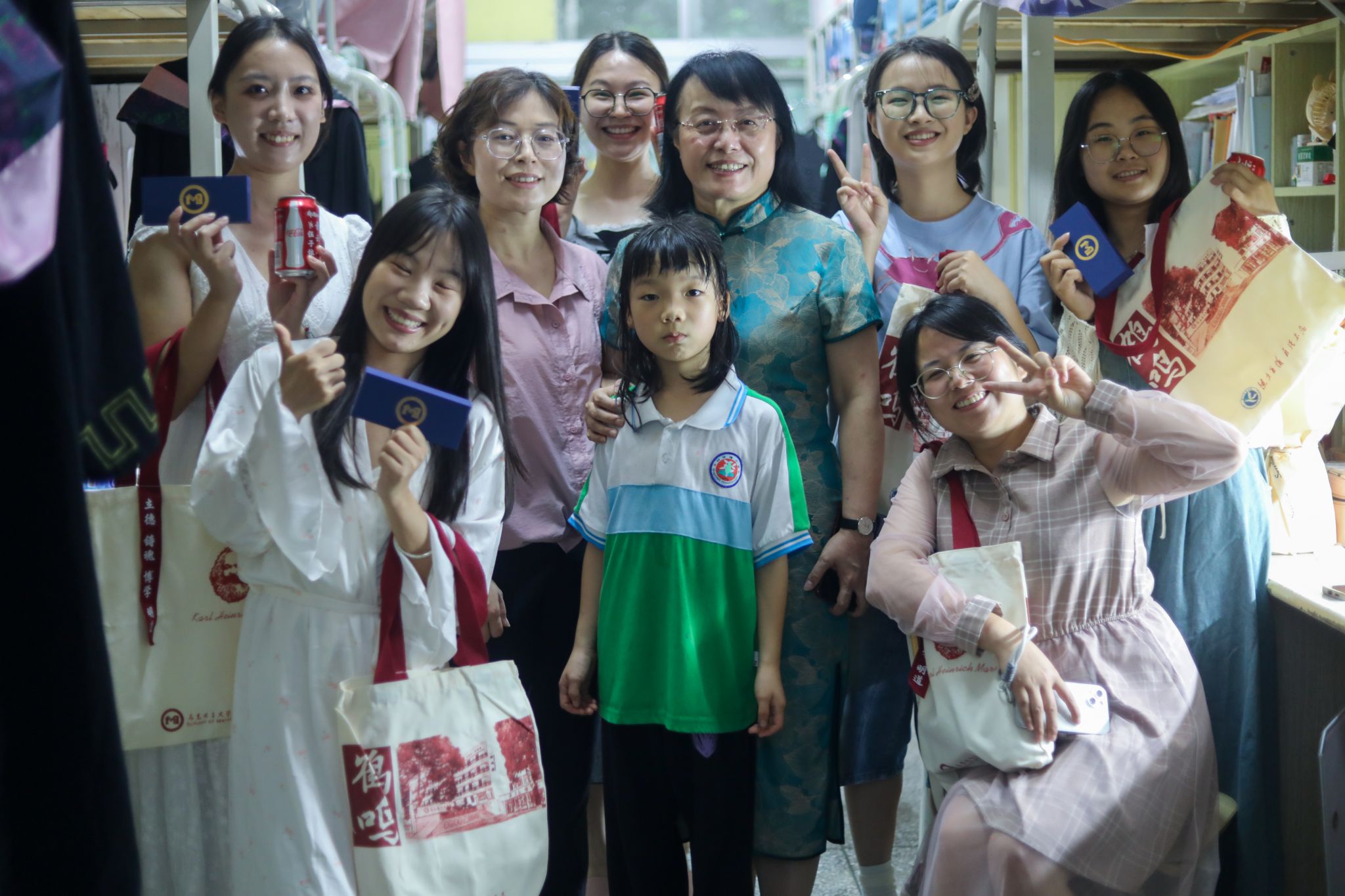 老师们带着专属定制的“马院文创帆布袋”、定制印章和印有名字的可乐,一间一间敲开同学们的门,亲手为每一位学子送上一份用心十足的毕业礼物。当晚,马院礼物的动态在朋友圈“刷屏”展播。