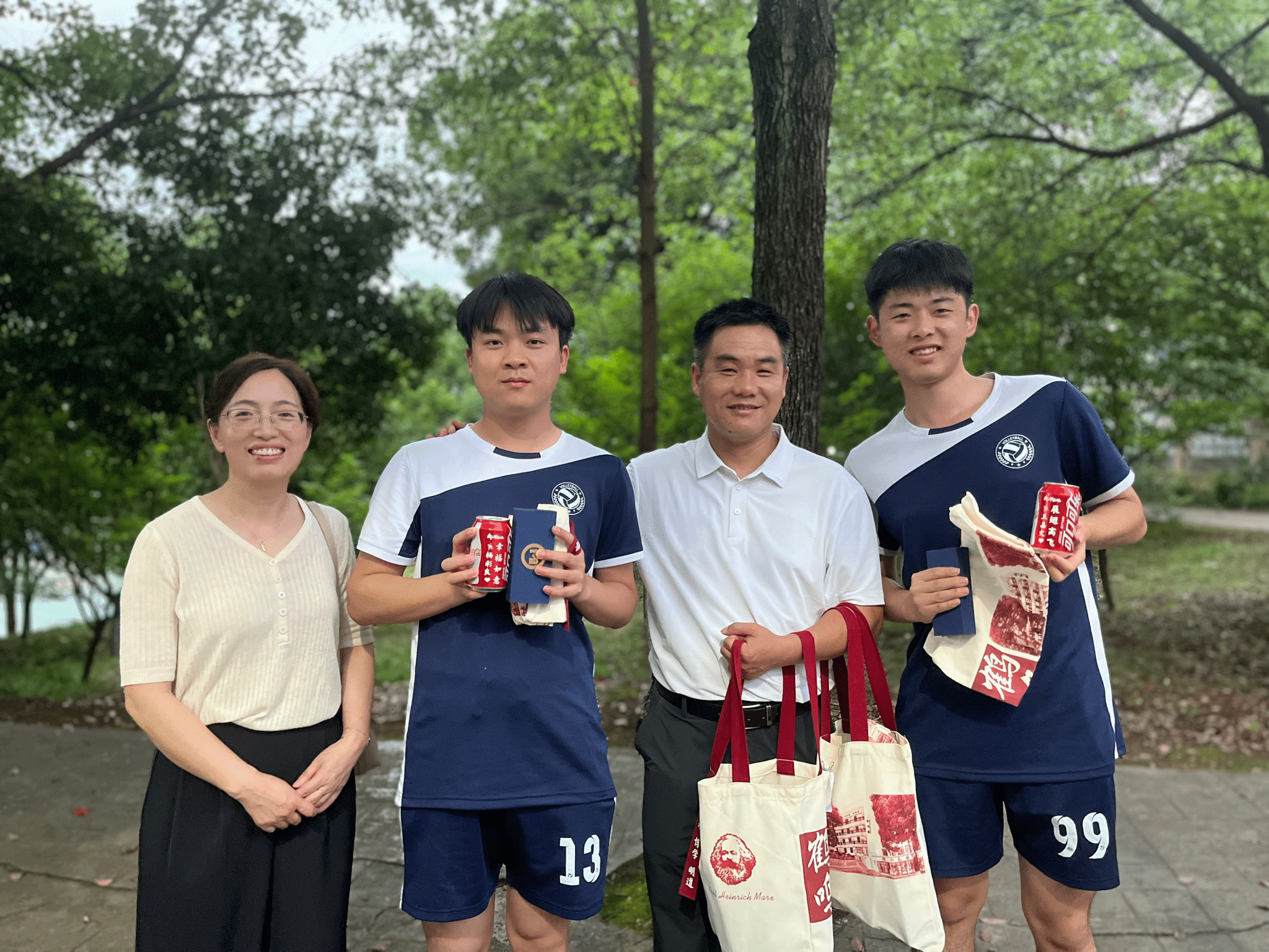 王嘉文同学说“无处不在的高书记果然名不虚传,我去打排球的路上都被碰上了,在路上完成了礼物交接仪式,极具戏剧性,但很感动”。