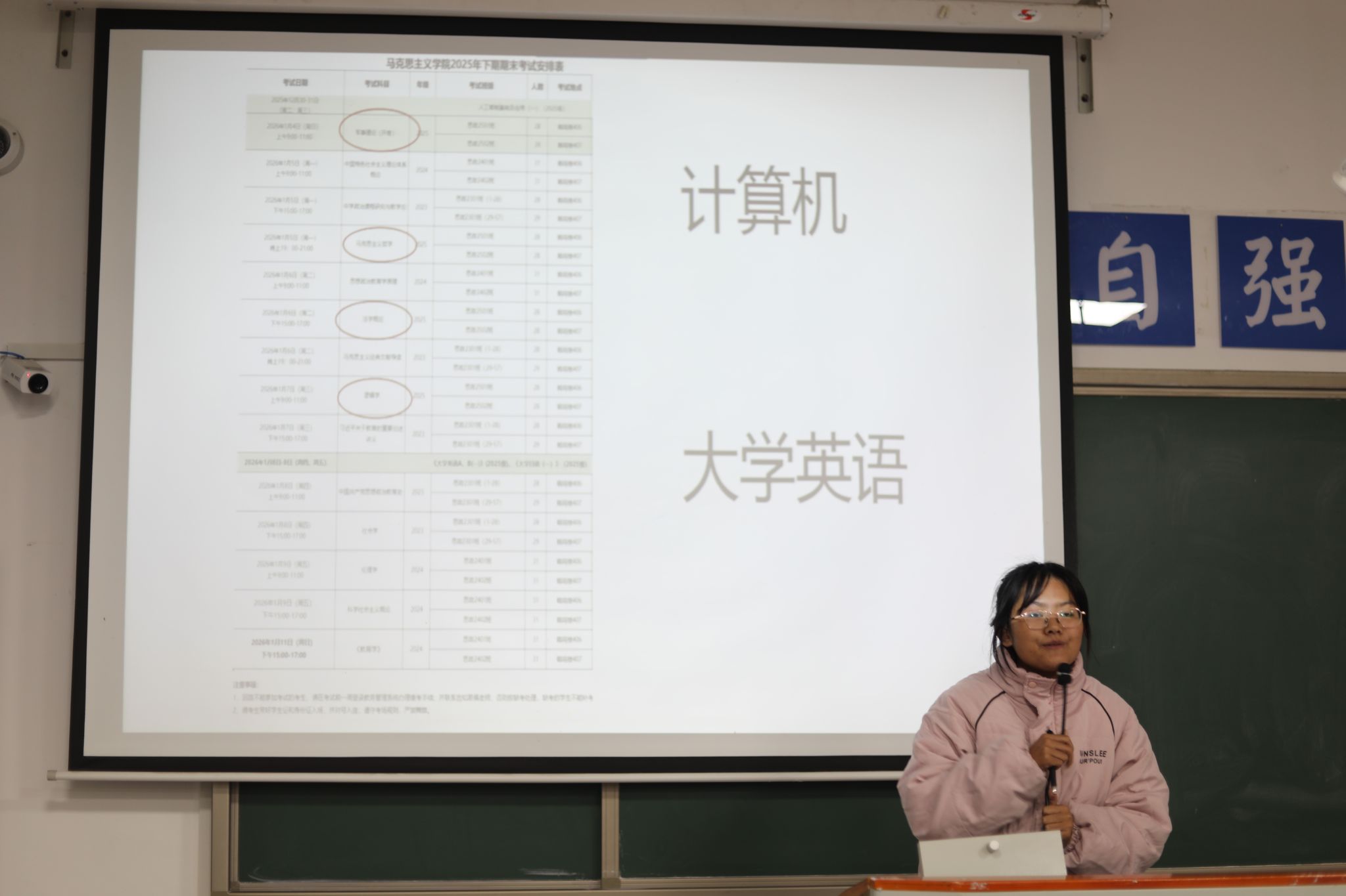 本网讯(记者 赵颖雪)临近期末,为帮助我院学生高效备考、明确考纪要求,营造诚信自律的考试氛围,马克思主义学院统筹推进系列学风建设活动。12月16日,学院面向大一新生在鹤鸣楼501教室举办了期末考试经验分享会;同期,全院各班级同步组织开展“期末考风考纪教育”主题班会,双措并举为期末备考筑牢保障。