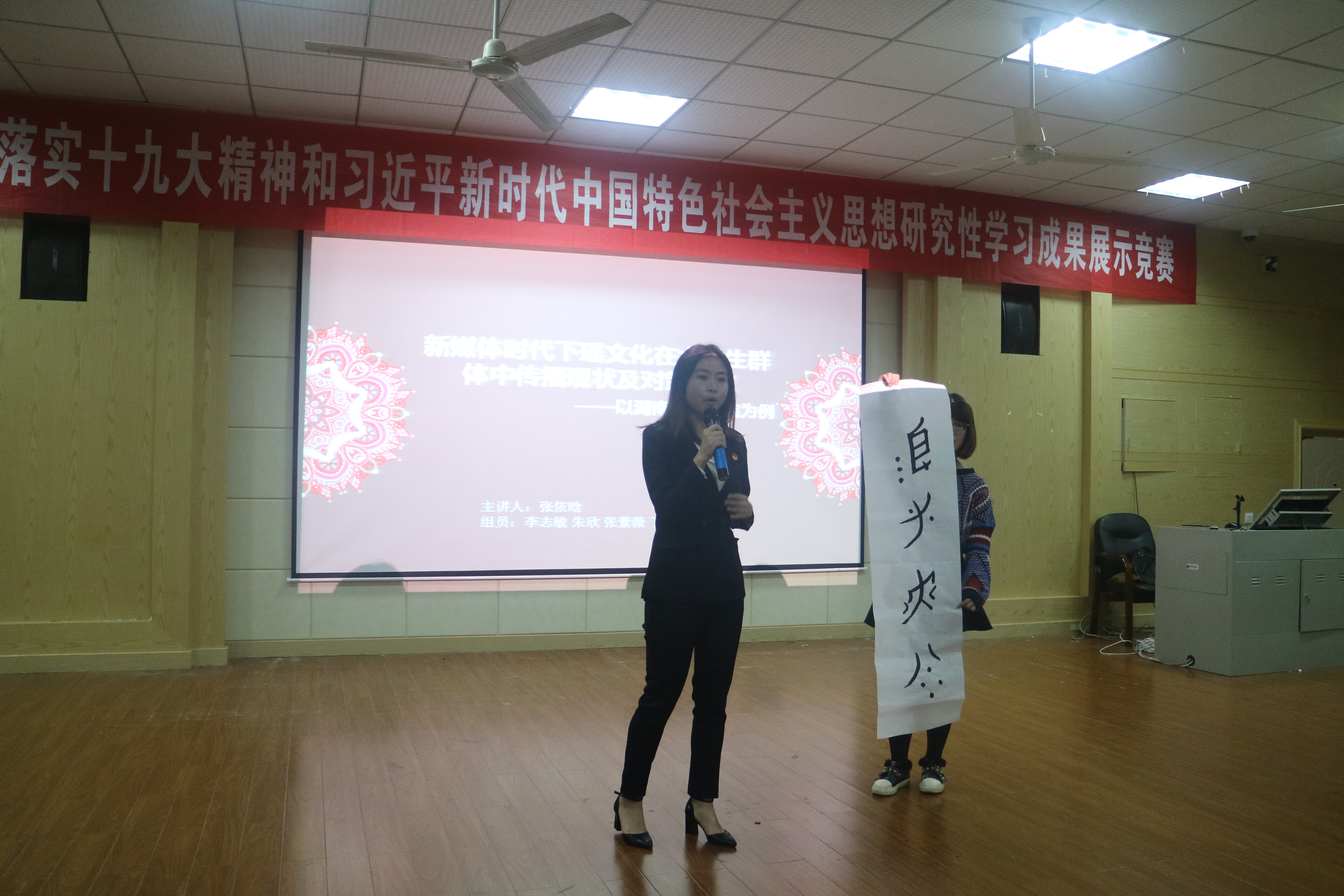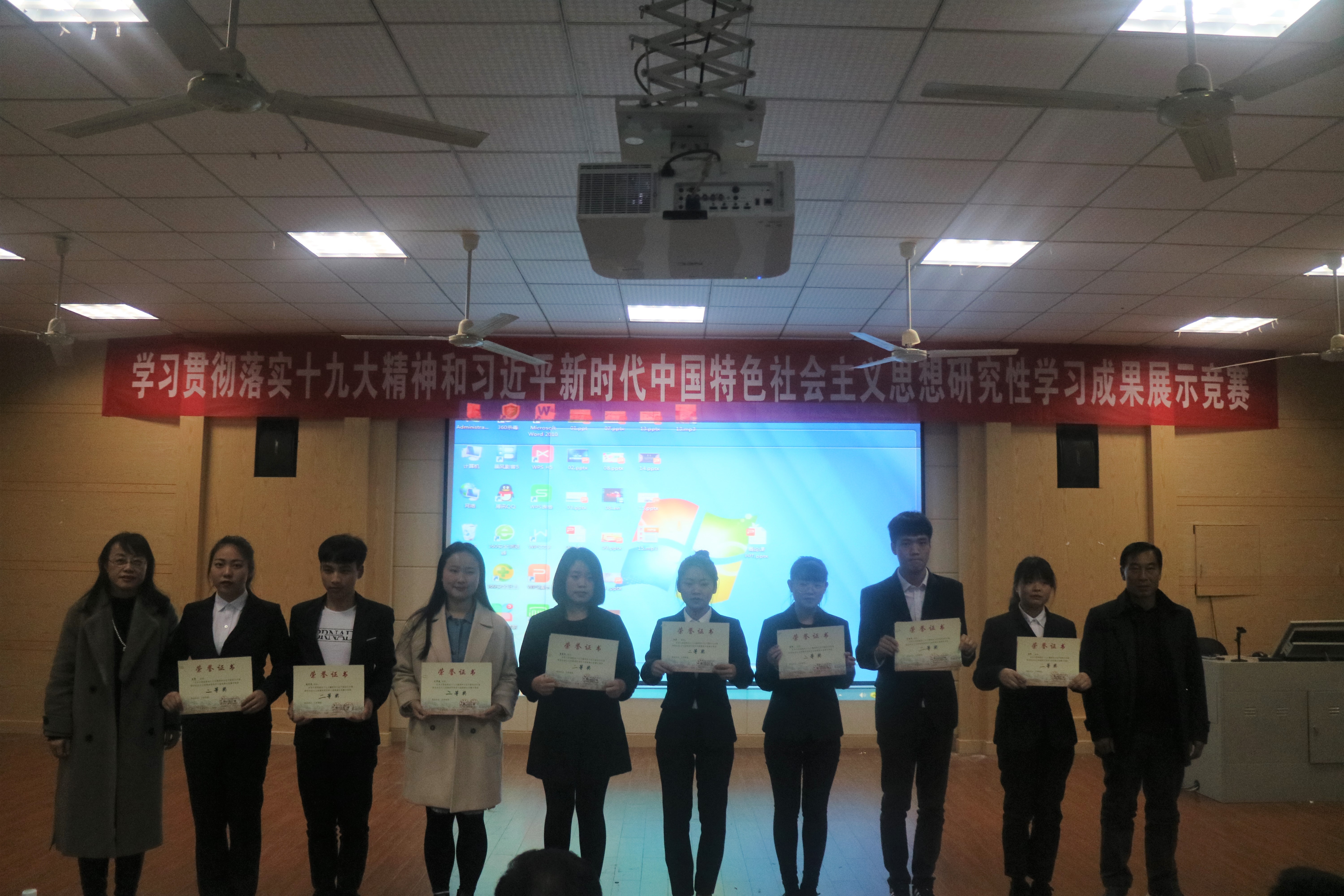本网讯 (通讯员 张亚娟)12月26日晚,马克思主义学院在致远楼701举办bat365中文官方网站学习贯彻落实十九大精神和习近平新时代中国特色社会主义思想研究性学习成果展示竞赛活动。此次共30个作品参加决赛展示。比赛中,各小组分别从“选题意义”、“研究成果”、“研究中存在的不足及进一步研究设想”及“研究性学习收获”等几个方面展示研究性学习报告。作品《湘科院学生健身情况调查》针对学生身体素质锻炼提出合理性建议,以新颖的微视频鼓励学生积极参加体育锻炼、强健体魄。作品《乡村振兴之路——永州香零山村发展现代化农业及旅游调研》讲述了香零村富起来的历程并提出在互联网时代山村循坏发展、健康发展的新路线。各参赛小组用针砭时弊的眼光,提出一系列可行措施,赢得观众阵阵掌声。