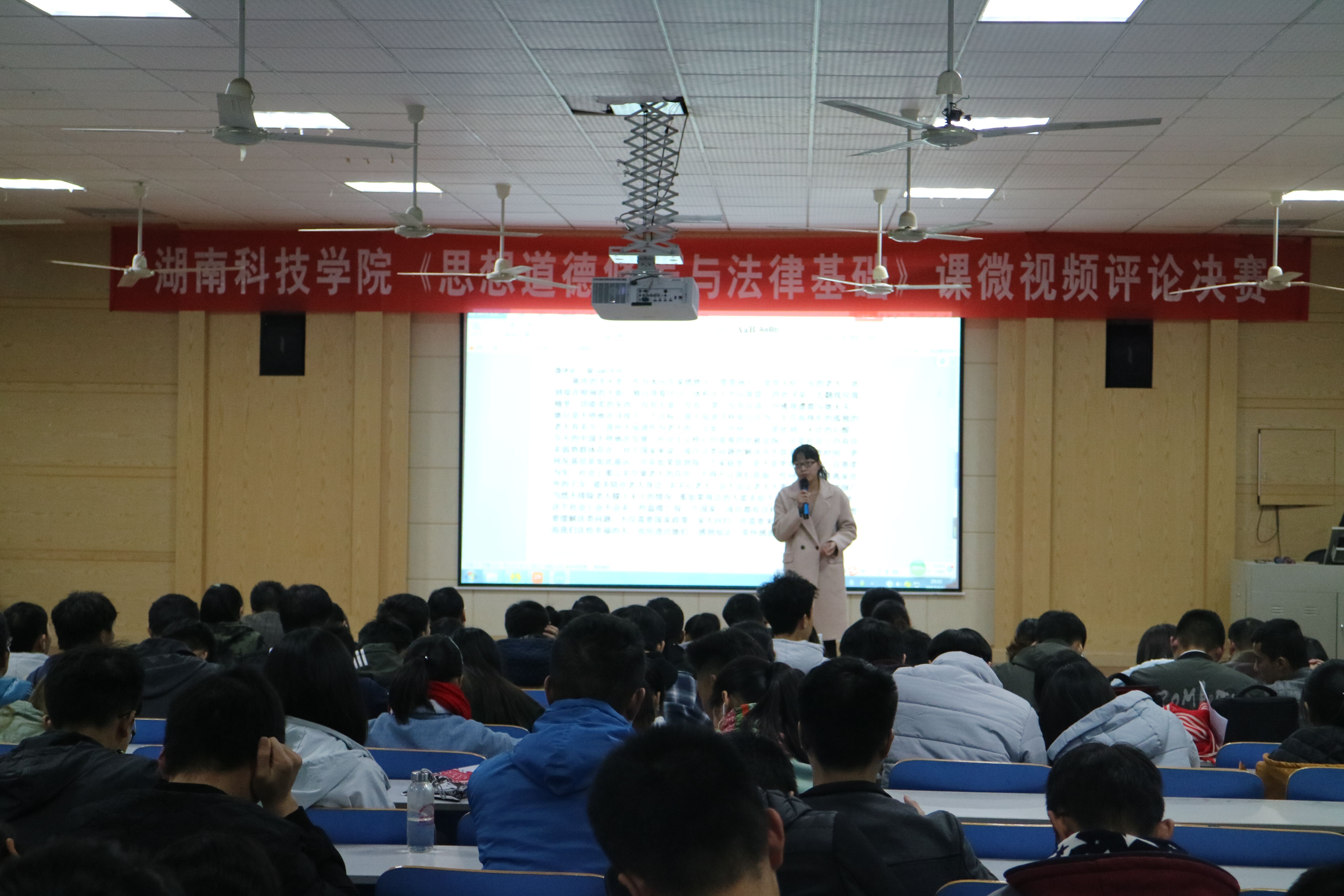 本网讯 (通讯员贺茶湘彭超)为贯彻落实党的十九大精神,深入学习习近平新时代中国特色社会主义思想,推动bat365官网思想政治理论课教学改革。12月8日晚,马克思主义学院在致远楼举行《思想道德修养与法律基础》课微视频微评论评比决赛。该院党总支书记唐森树以及教务处、教学质量管理处的相关负责人等出席并担任评委。