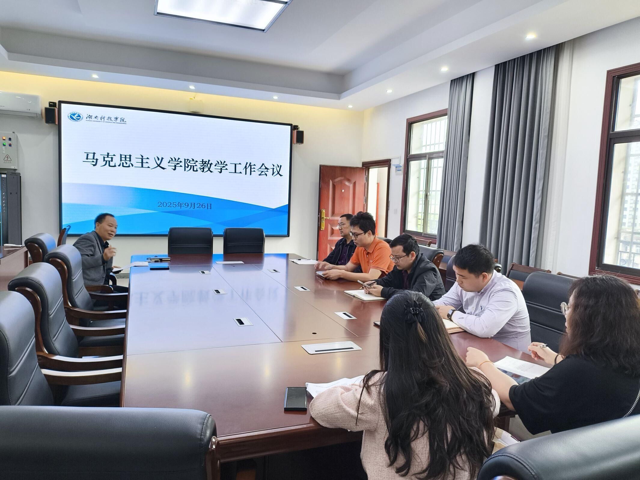 (通讯员 易佩)9 月 26 日,马克思主义学院召开专题会议,分管教学副院长郭开虎主持,各教研室主任参会。会议聚焦课堂教学管理优化与分阶段磨课工作,明确提升教学质量的具体路径。