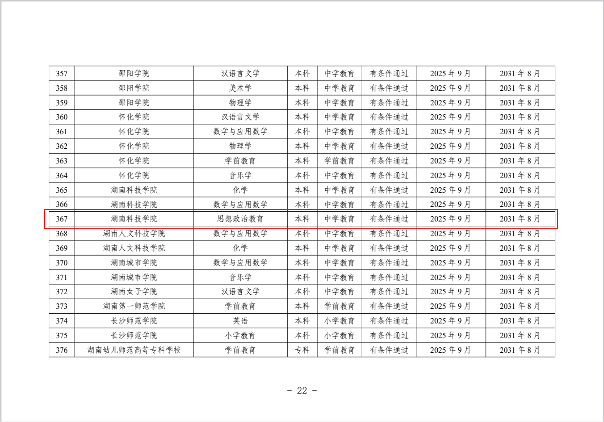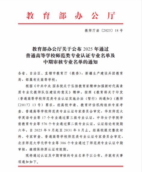 本网讯(记者 吴志伟)近日,教育部办公厅发布《关于公布2025年通过普通高等学校师范类专业认证专业名单及中期审核专业名单的通知》,我院思想政治教育专业成功通过普通高等学校师范类专业第二级认证。该专业同时成为bat365官网本年度通过此项认证的三个专业之一,标志着其师范类专业建设质量与人才培养水平获权威认可。
