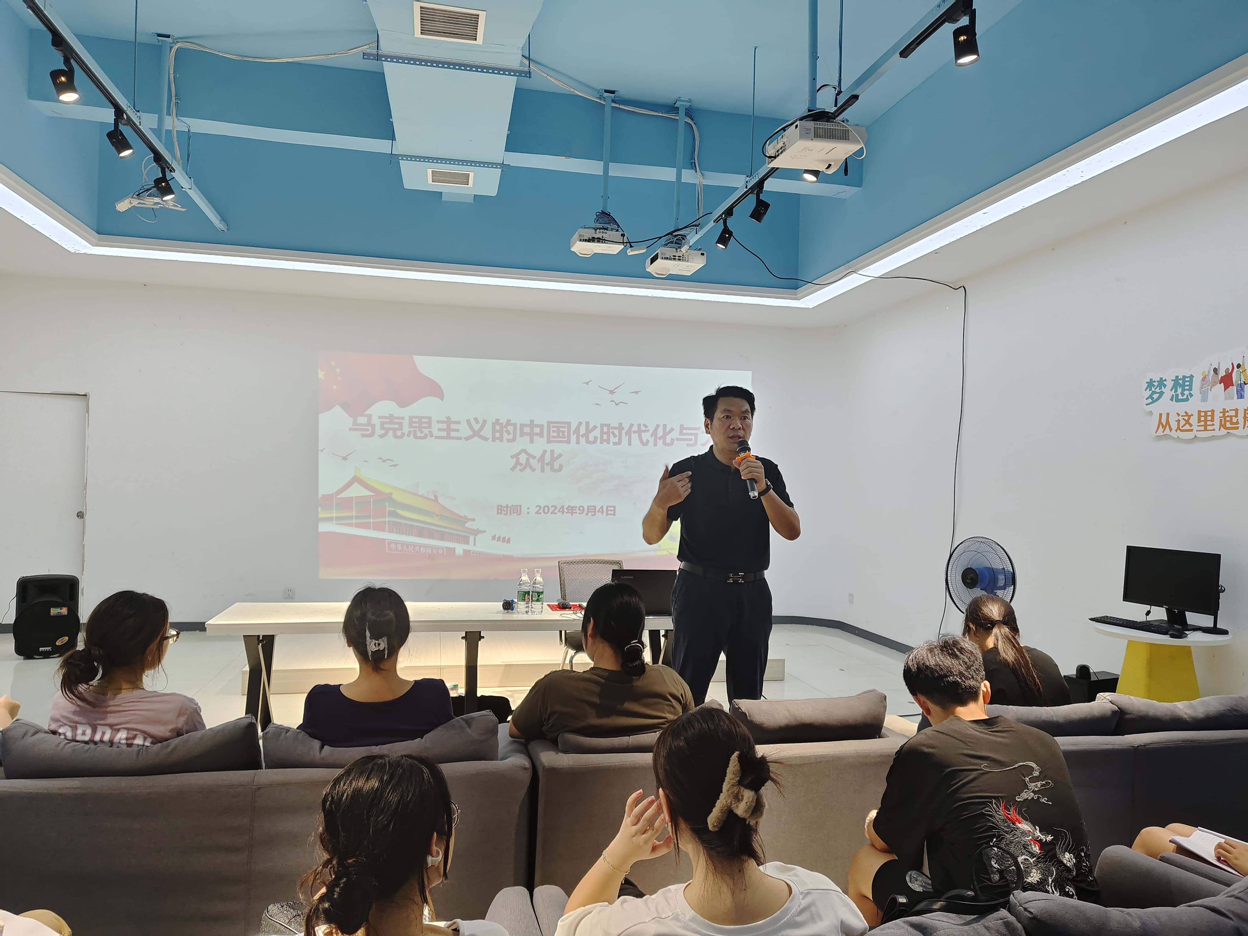 本网讯(记者 郭瑞)为引领青年学生感悟马克思主义中国化时代化大众化的重要成果。9月4日晚,马克思主义学院于创新创业学院一楼报告厅开展题为“谈马克思主义的中国化时代化大众化”的专题讲座。本次活动由副教授李定坤主讲,我院2022级及2023级全体学生参与。