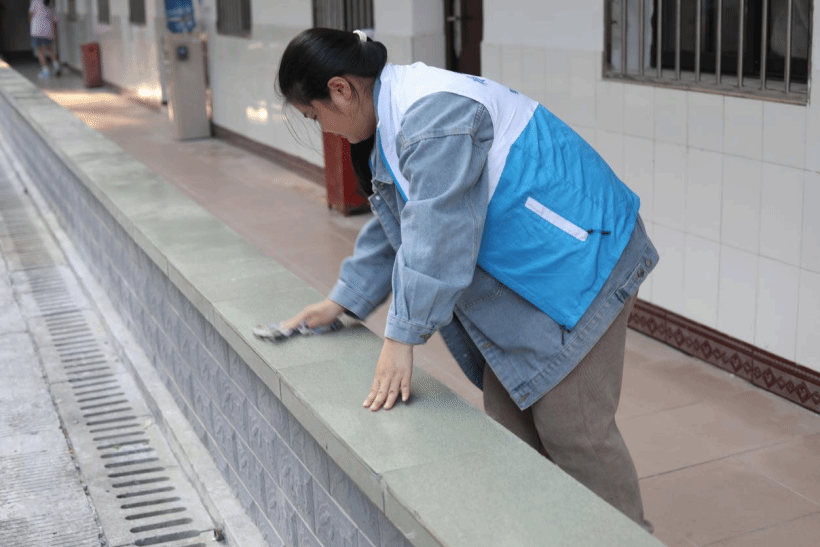 活动负责人合理分配各项劳动任务,叮嘱相关事项,志愿者们各司其职,有序对我院进行细致全面的清洁。