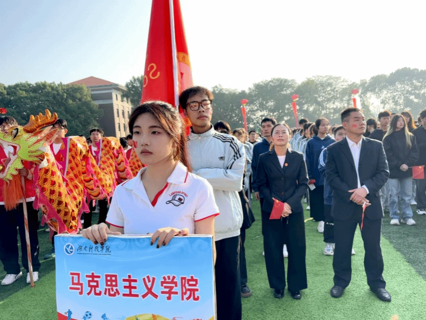 本网讯(记者 丁紫涵 易淑妍)“马院起航,青春激扬,团结奋进,勇创辉煌!”响亮的口号声穿透了清晨的薄雾。10月31日上午,bat365中文官方网站第十九届田径运动会开幕式在田径场举行。马克思主义学院党总支书记陈玉皎、党总支副书记高丹、24级辅导员曹惠如参与到方阵队伍中。