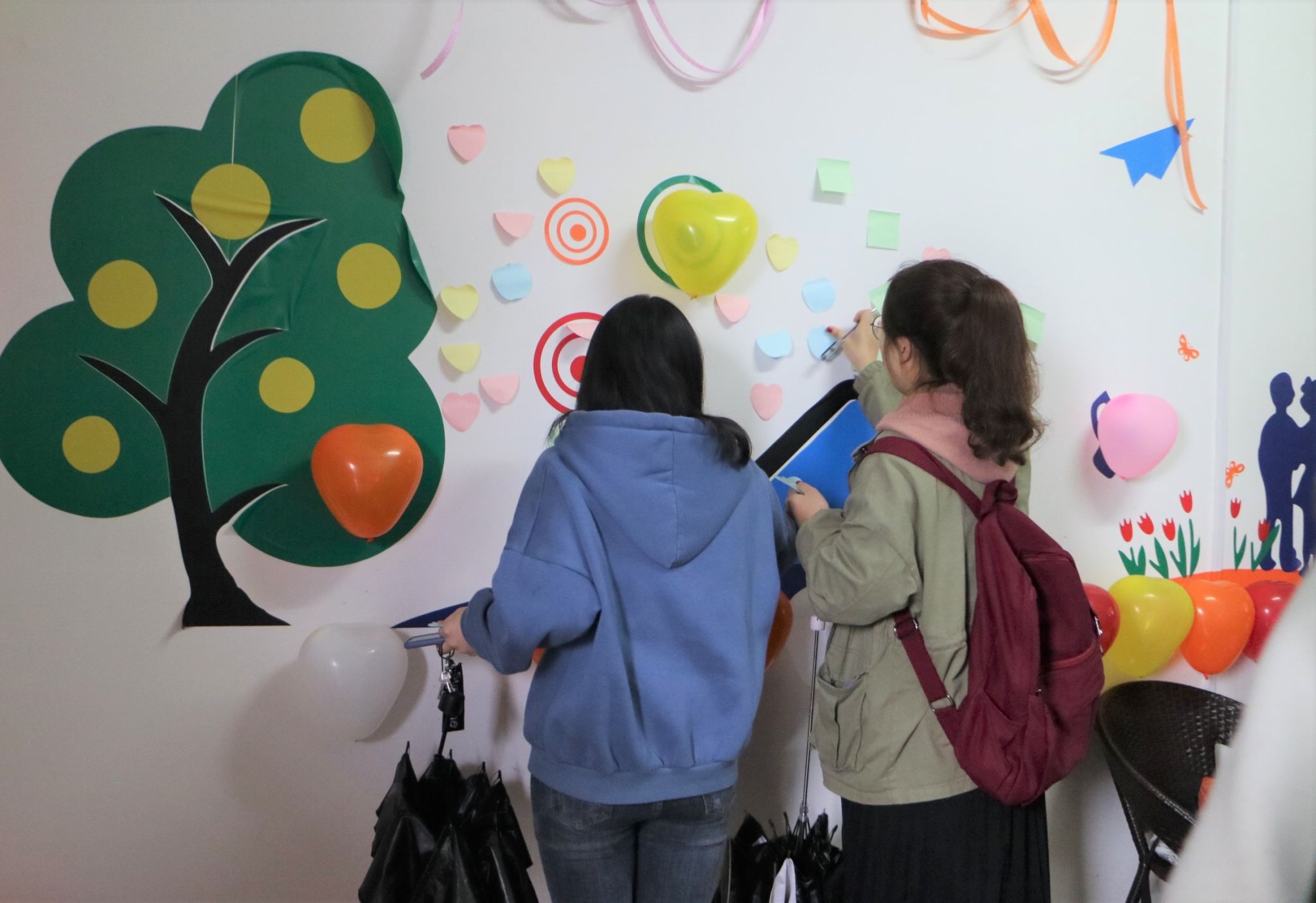 活动包括女生制作许愿墙、水果拼盘“大比拼”等内容丰富,形式新奇的环节。许愿墙前,女生们开心地写下心愿,有的希望获得一本经典的书籍,有的许愿能被邀请外出游玩,有的希望男生给自己唱首歌,各种千奇百怪,内容各异的愿望都等着被抽取和实现。“水果拼盘”比赛中,几种简单的水果经选手们用心雕刻、摆放,成为极具象征意义的“水果雕塑”。各组还选派一名同学阐述本组的创作理念和寓意。现场气氛活跃,新颖的活动形式吸引众多学生参与。