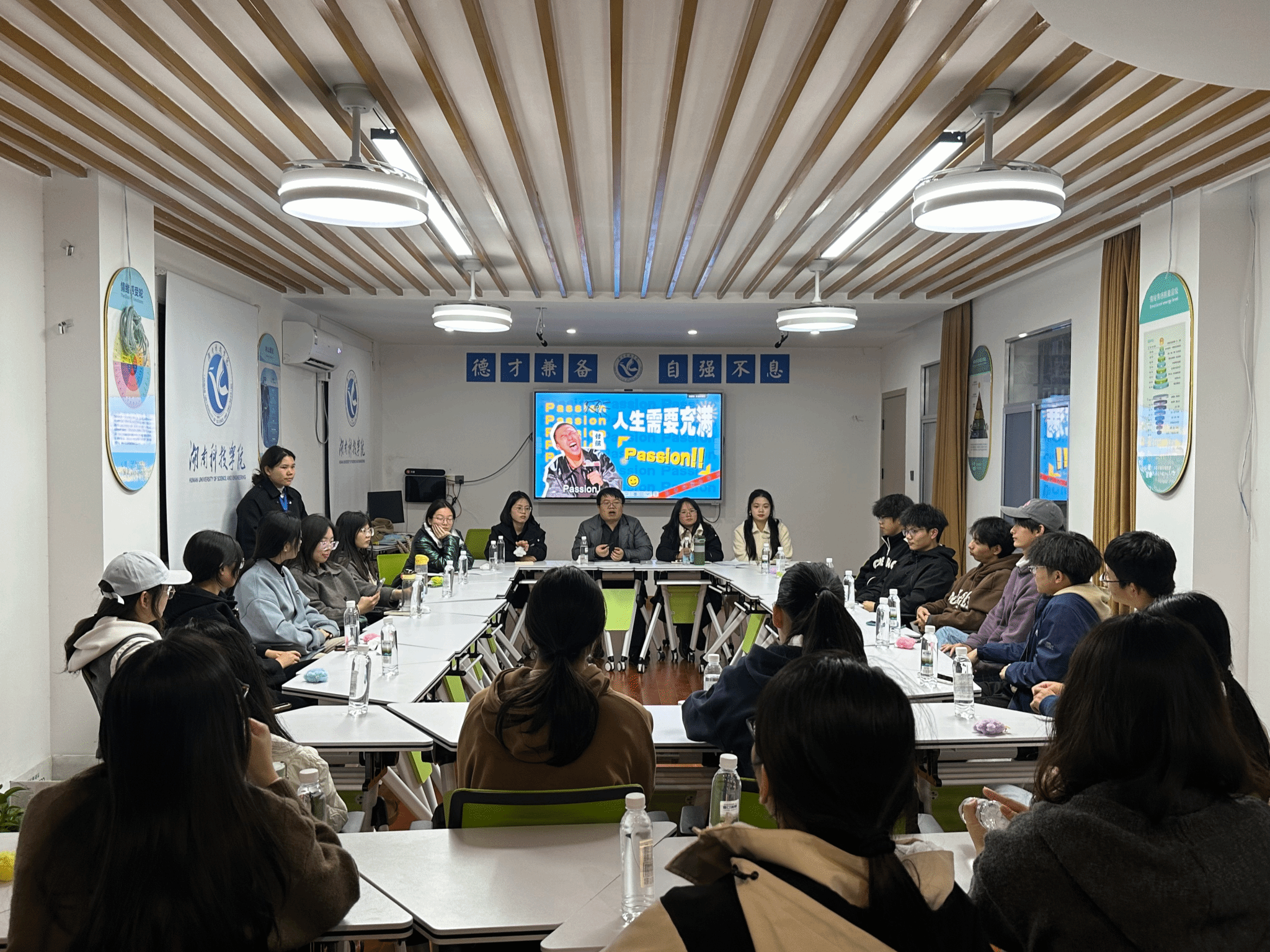 本网讯(记者 唐舒琪)为帮助同学们更好解决“内耗”问题,11月22日,马克思主义学院院与理学院于心理中心智慧教室开展“潇湘心语之拒绝精神内耗,以passion铸就真实自我”主题沙龙活动。马院辅导员曹惠如、理学院辅导员赵江南作为本期沙龙活动特邀嘉宾参会,优秀学姐潘媛、赵沂作主题分享,沙龙参与者来自各个学院。