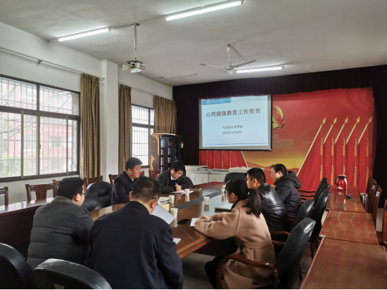 胡敏辉介绍,本次督导主要找问题、提意见、完善帮扶措施。随后,马克思主义学院心理专干王君老师就学院心理健康教育工作开展情况向督导工作组进行汇报。督导组和班主任、辅导员就校级重点关注对象情况进行现场研讨,并提出具体帮扶完善措施。