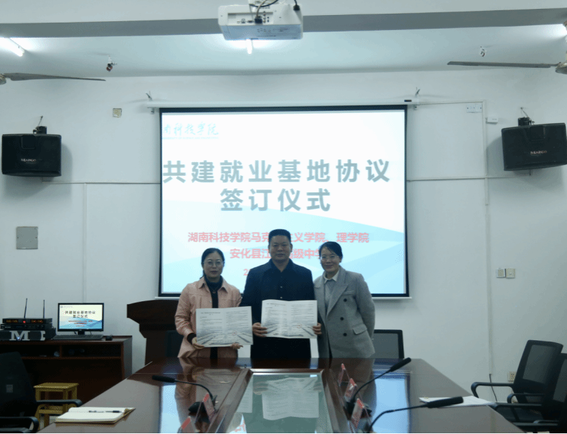 会后,三位领导共同签订“共建就业基地协议书”。