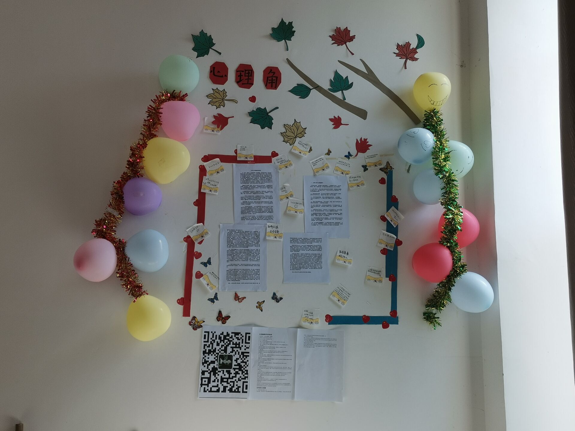 大赛要求心理角的三分之二为宣传版块,可知这一版块的设计是重中之重。因此各个班级设计这一版块时别具匠心,以此展示出他们班级的独特的风格与构思。或是用幽默引导最后却以鲜血痛击,或是罗列案例用数据书写悲剧,又或是平静叙述然后用热切拥抱生活。各班级对心理角的装饰也不尽相同,有班级用绿叶点缀,有班级用鲜花与祝愿簇拥,有班级用大大小小的照片为其增添一抹温柔与暖意。各班级的装饰各具特色,各有千秋。罗曼罗兰曾说“世界上只有一种真正的英雄主义那就是在认清生活的真相后依然热爱生活,。”本次比赛,激发了湘科院学子的创新精神,加强了班级与班级之间的沟通,也宣传了大量心理知识。