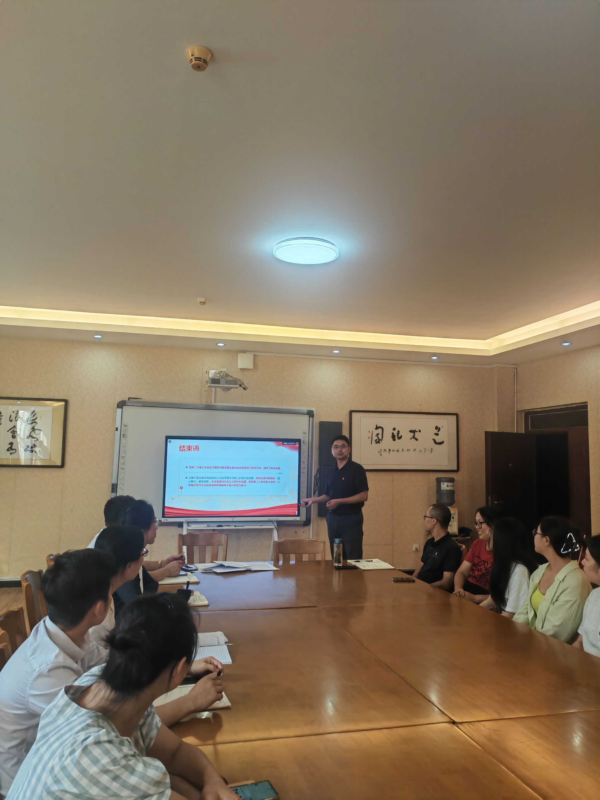 本网讯(通讯员 肖丽)2024年9月29日下午,美术与艺术设计学院党总支书记王博在美术楼南202会议室为全体师生党员上专题党课,宣讲党的二十届三中全会精神。