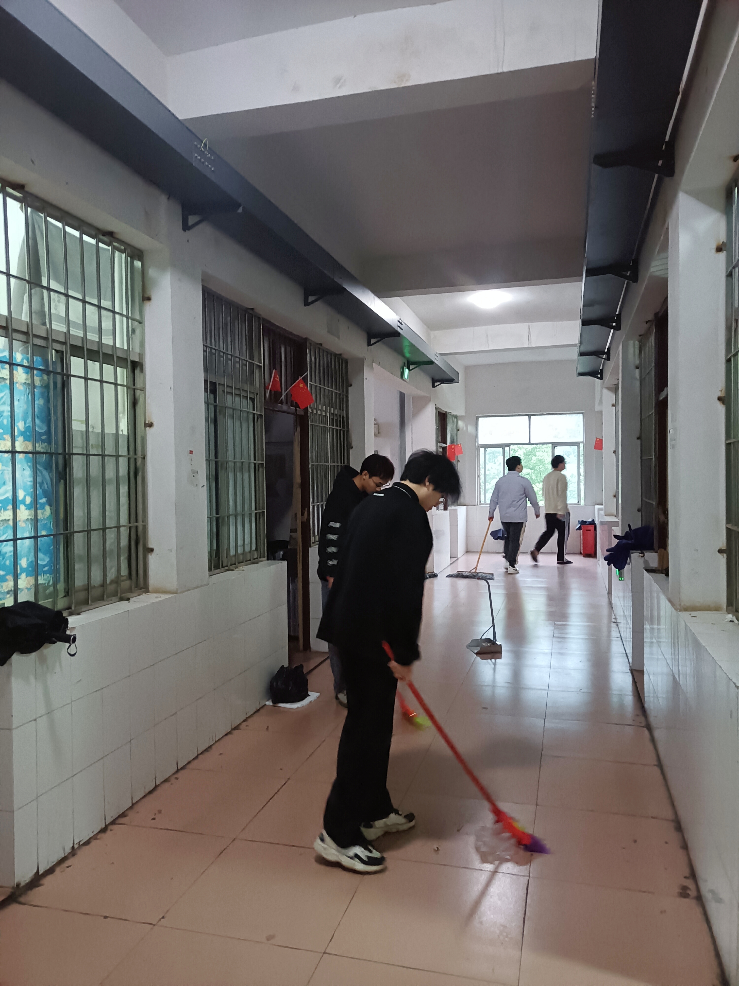 活动开始前,学生党员们集体讨论劳动实践的具体分工与安排,并针对劳动工具摆放的存放点、各层楼的人员安排、劳动形式等问题做出了具体安排,进行分区负责,使打扫区域更全面,打扫更彻底,认真用打扫工具清理宿舍走廊和楼道卫生,对卫生死角进行逐一排查。学生党员们分工明确,充满热情、认真清理着每个角落。