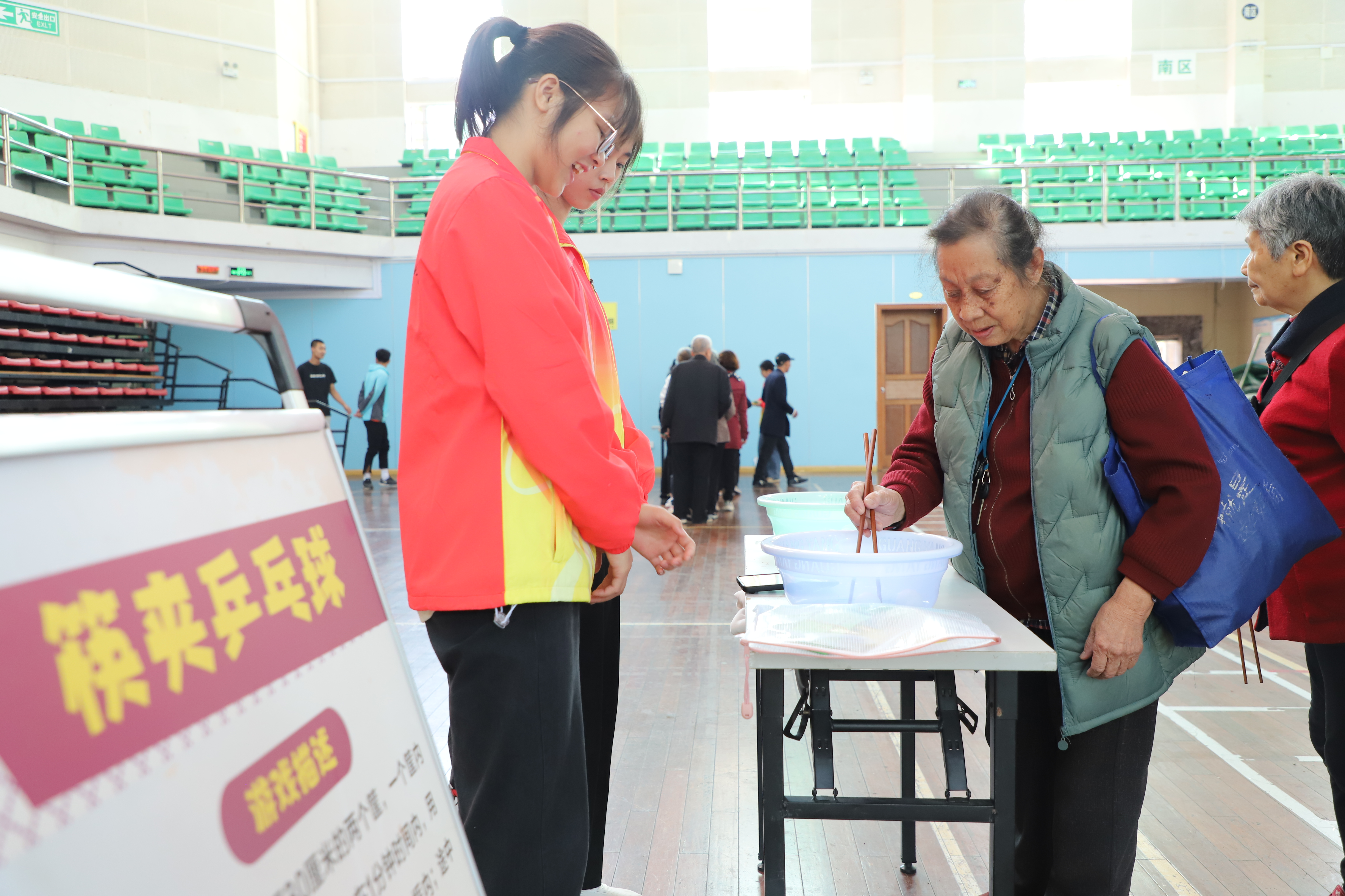 游艺活动分为简易保龄球、筷夹乒乓球、投球进筐、蒙面敲锣、投掷飞镖、智慧套圈、吹蜡烛等七个游戏模块。活动现场,老同志们神采飞扬,活力四射,纷纷参与到活动当中。不少老同志还举起自拍杆,和老友们自拍合影。
