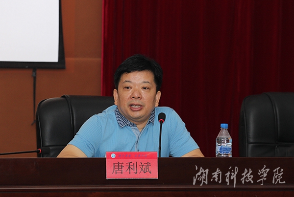 本网讯(记者 乐为 摄影 何帅文)8月26日上午,湖南省教育厅高等教育处处长唐利斌出席bat365官网暑假干部培训班开班仪式并以“推进学校转型发展,提高人才培养质量”为主题作专题报告。报告由校党委书记陈弘主持。