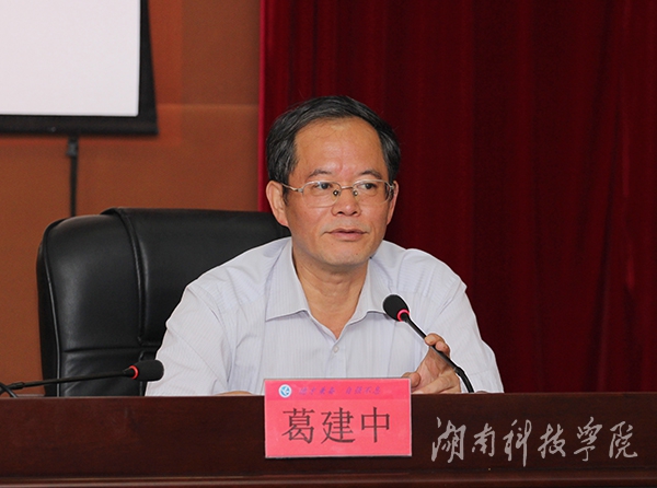 本网讯(陈小燕 摄影 何帅文)8月26日上午,湖南省教育厅党组成员、副厅长葛建中出席干部培训班开班仪式并以“高校转型发展”为主题作专题报告。报告由校党委书记陈弘主持。