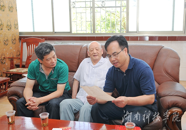 如今,老人在家安享晚年,谈起当年的峥嵘岁月,他仍然难掩内心澎湃的激情。当聊起幸福的晚年生活时,老人脸上洋溢着满意的微笑。他高兴地告诉陈弘书记:“现在的时代好,国家政策好,学校非常关心我们,我们是在享共产党的福哩!”当提及对现今时代的感悟时,老人拿出自己深夜执笔的《老战士的心里话》:“毛泽东发展了马克思列宁主义,习近平发展了毛泽东思想、邓小平理论;谋国是,大政方针很正确;安天下,运筹帷幄智慧多;中国有了共产党、习近平,人民幸甚,国家幸甚;世界有了中国共产党、习近平,人类幸甚,天下幸甚;谦虚谨慎,不骄不躁,将中国特色社会主义事业继续推进!”真心真情溢于言表,同行的我们,无不肃然起敬。
