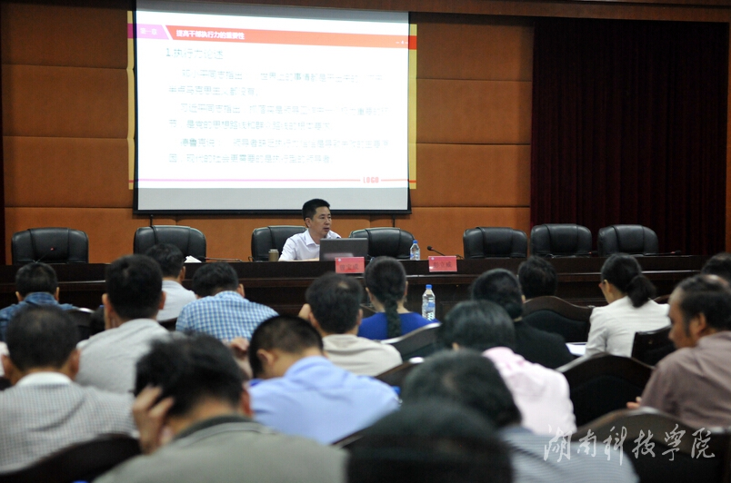 什么是执行力?曾宝成结合生动鲜活的实例,从多个层面,进行了深刻解读。他指出,执行力就是将思想转化为行动、把理想变成现实、把计划变为成果的能力。提高领导干部执行力有何重要意义?他强调,高校执行力关系到高校的生存与发展,有效执行是高校实现战略目标和跨越式发展的关键因素。因此,提高领导干部执行力是高校事业发展的必然要求,是干部自身发展的内在需要。“三分战略,七分执行。”执行力是目标和结果中间最重要的一环,这就要求我们加强作风和能力建设,全面提升执行力。