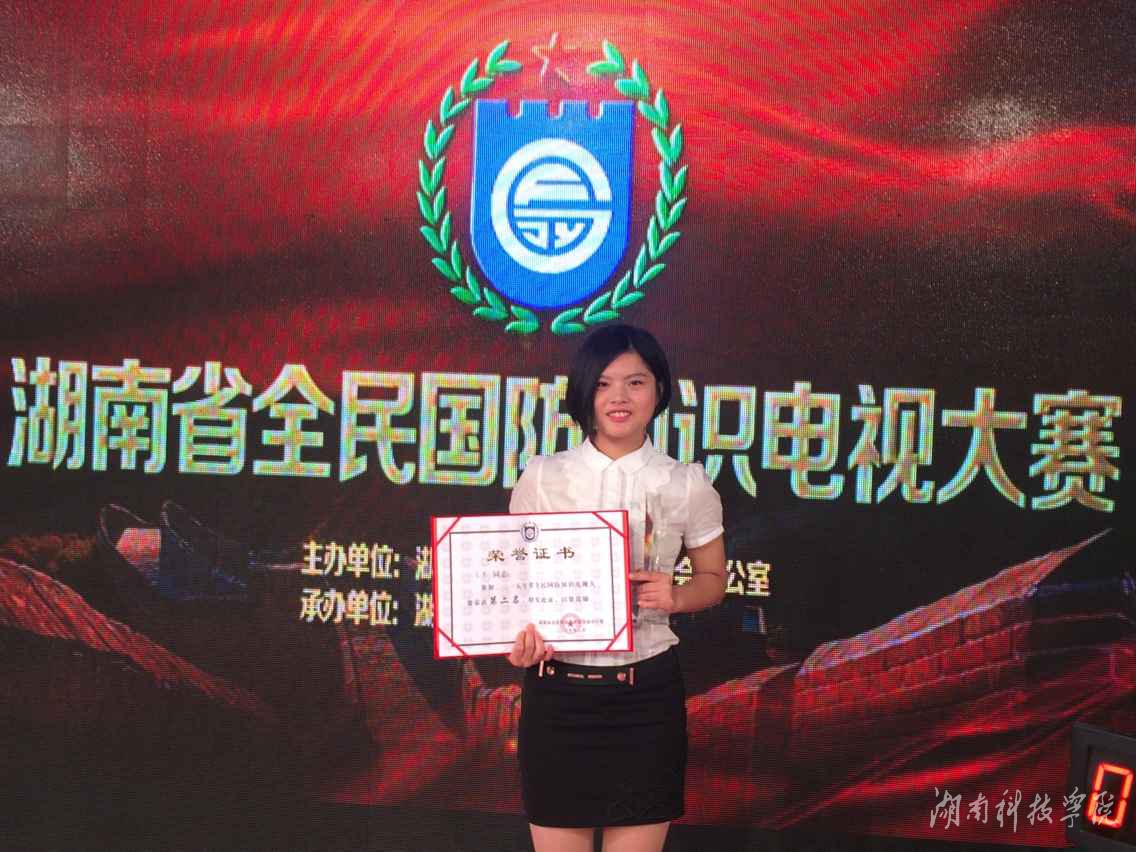 本网讯(通讯员 李红云)在7月7日举行的湖南省2015年全民国防知识电视大赛总决赛中,bat365官网传媒学院学生金慧荣获亚军。