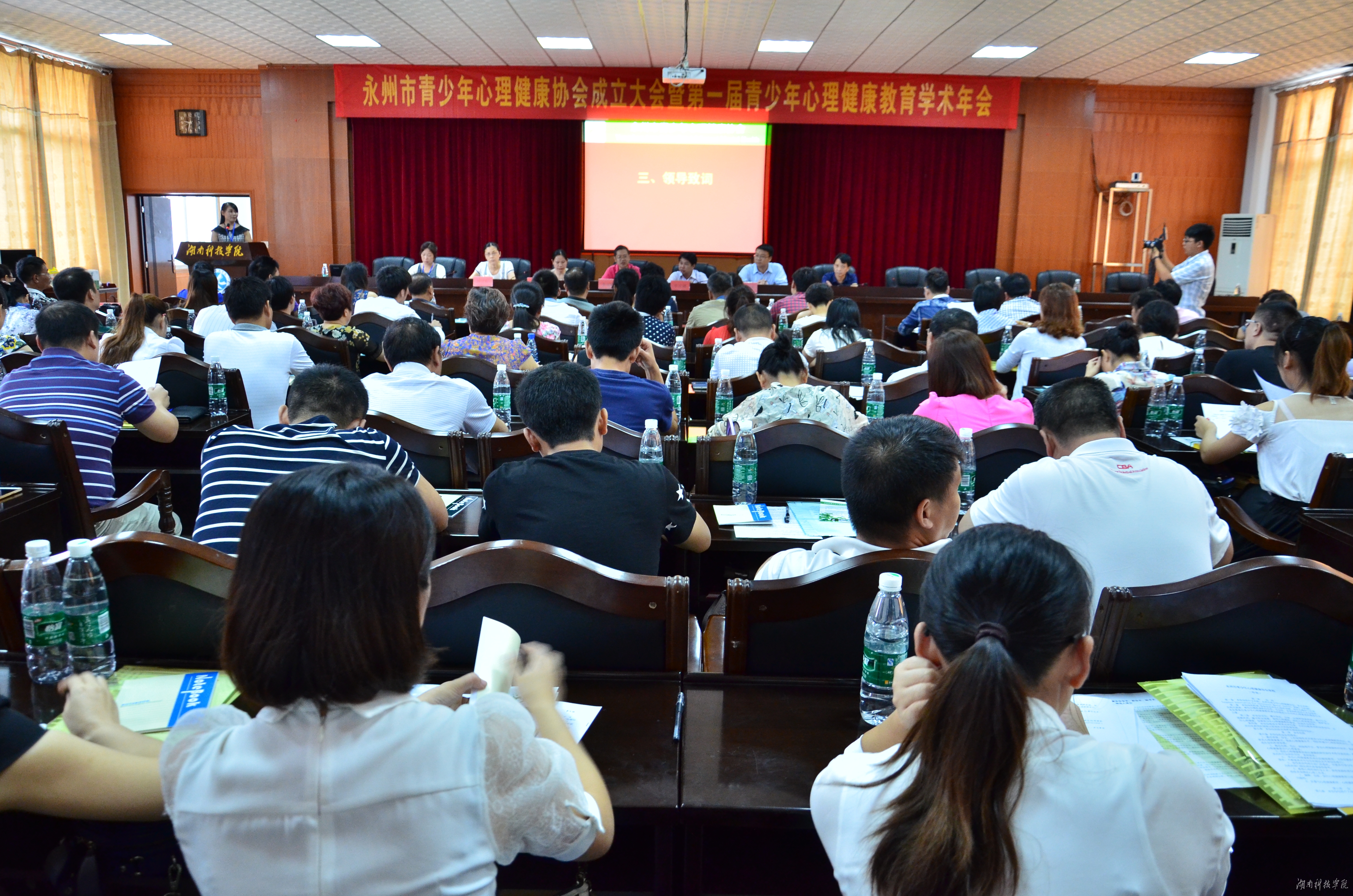 校党委委员、副校长李常健、团市委书记周亮、市教育局副局长李谋韬、永州市教科院副院长唐佐明及零陵区教育局、团零陵区委、冷水滩教育局、团冷水滩区委等相关部门领导出席。协会首批基地单位、常委理事单位、理事单位、会员单位等相关人员参加大会。