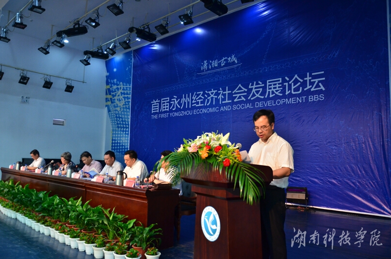 陈弘在致开幕词中指出,在当前省委、省政府“四化两型”总战略、“三量齐升”总要求和市委市政府“四个三”的战略背景下,学校紧紧围绕市委市政府的战略部署,面向“品质活力永州”的需要,主动适应发展新常态,举办本次论坛,这既是学校建设应用型大学的一次重要行动,也是进一步密切校地关系的一次重要契机,具有很强的现实意义。