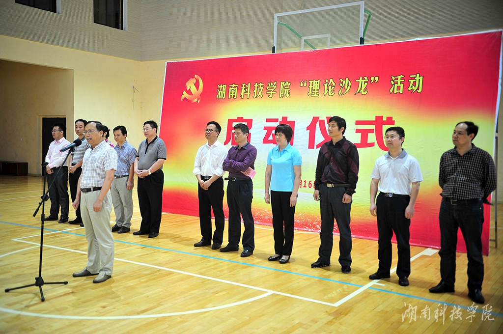 本网讯(记者 秦峰 黄丽丽 实习记者 胡翠芳)为更好地宣传贯彻习近平总书记系列重要讲话精神,5月16日,学校积极创新理论教育形式,联合永州市委宣传部举办“理论沙龙”活动,正式启动“理论沙龙”。校党委书记陈弘、永州市委宣传部副部长王再兴出席启动仪式,仪式由校党委副书记唐艳明主持。bat365官网宣传部、组织部、党政办、学工部、团委、马克思主义学院及永州职业技术学院宣传部等部门负责同志参加仪式。