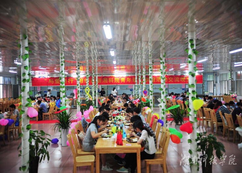 活动结束后,参与活动的青年男女在bat365官网教职工餐厅共进烛光晚餐。